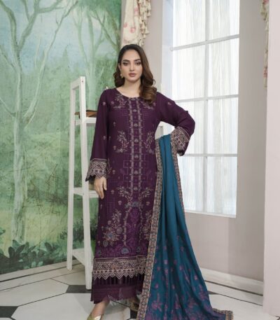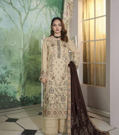Manizay Umeed Khush Rang Premium Embroidered Dhanak With Heavy Embroidered Dhanak Shawl M-01