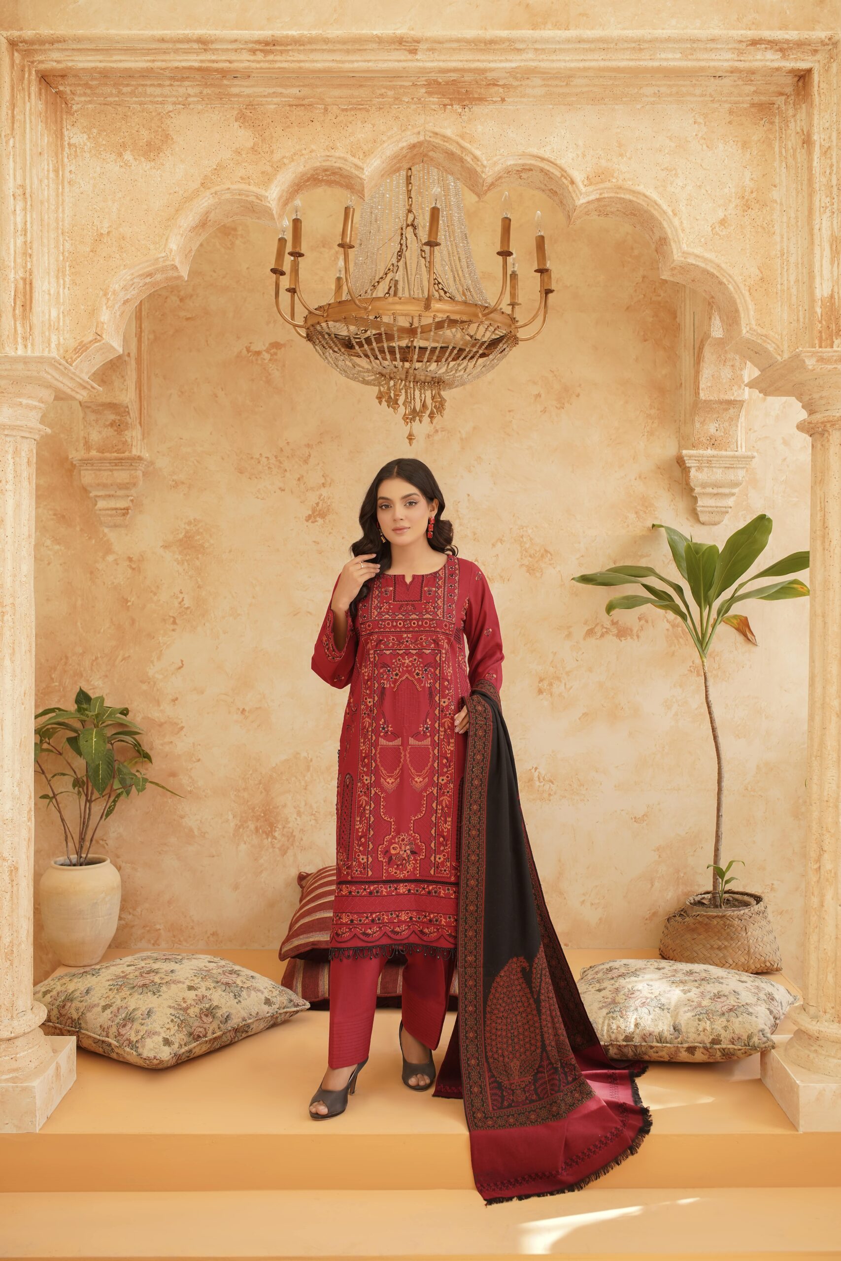 Manizay presents Bandhan — a symbol of warmth, elegance, and lasting grace. Crafted from premium embroidered peach leather, this exquisite ensemble captures the true essence of refined winter fashion. The beautifully embroidered front, back, and sleeves showcase delicate artistry, while the plain dyed trouser offers balance and sophistication.