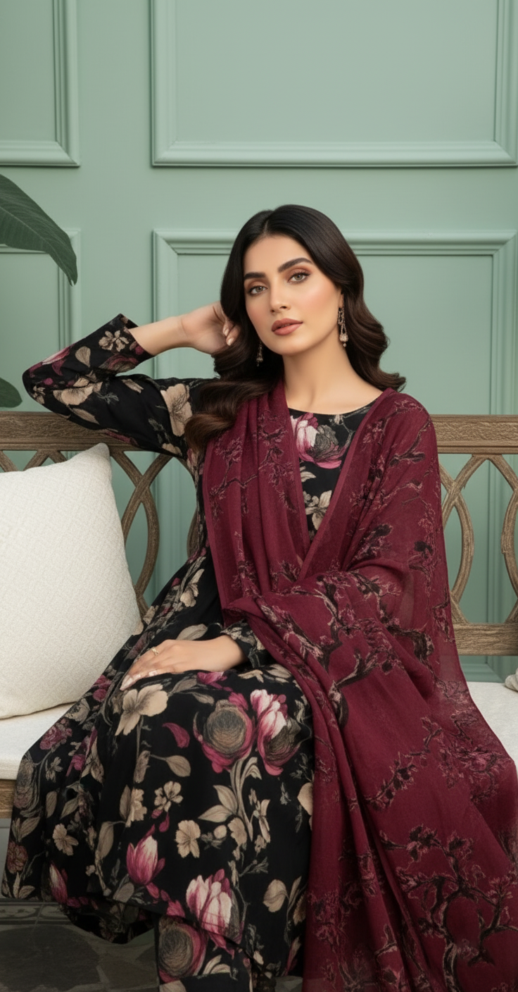 Premium Digital Print Viscos Front Premium Digital Print Viscos Back, Premium Digital Print Viscos Sleeves, Digital Print Viscos Trouser, Premium Digital Print Pure Crinkle Dupatta