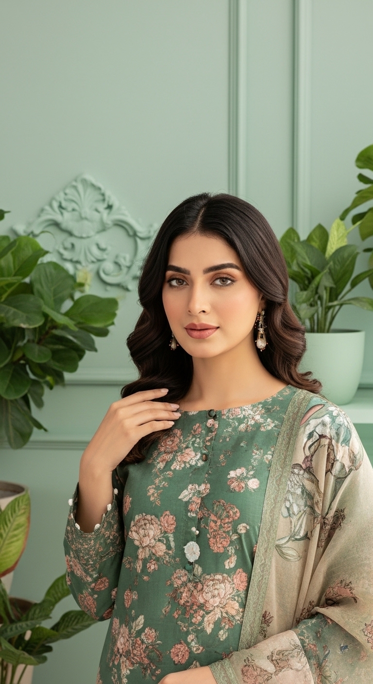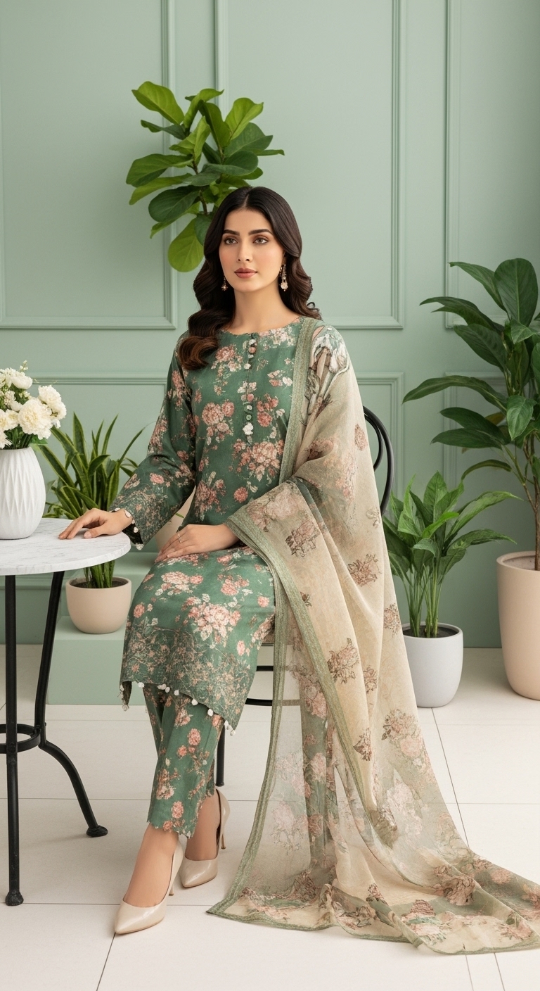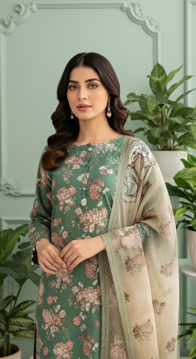 Premium Digital Print Viscos Front Premium Digital Print Viscos Back, Premium Digital Print Viscos Sleeves, Digital Print Viscos Trouser, Premium Digital Print Pure Crinkle Dupatta