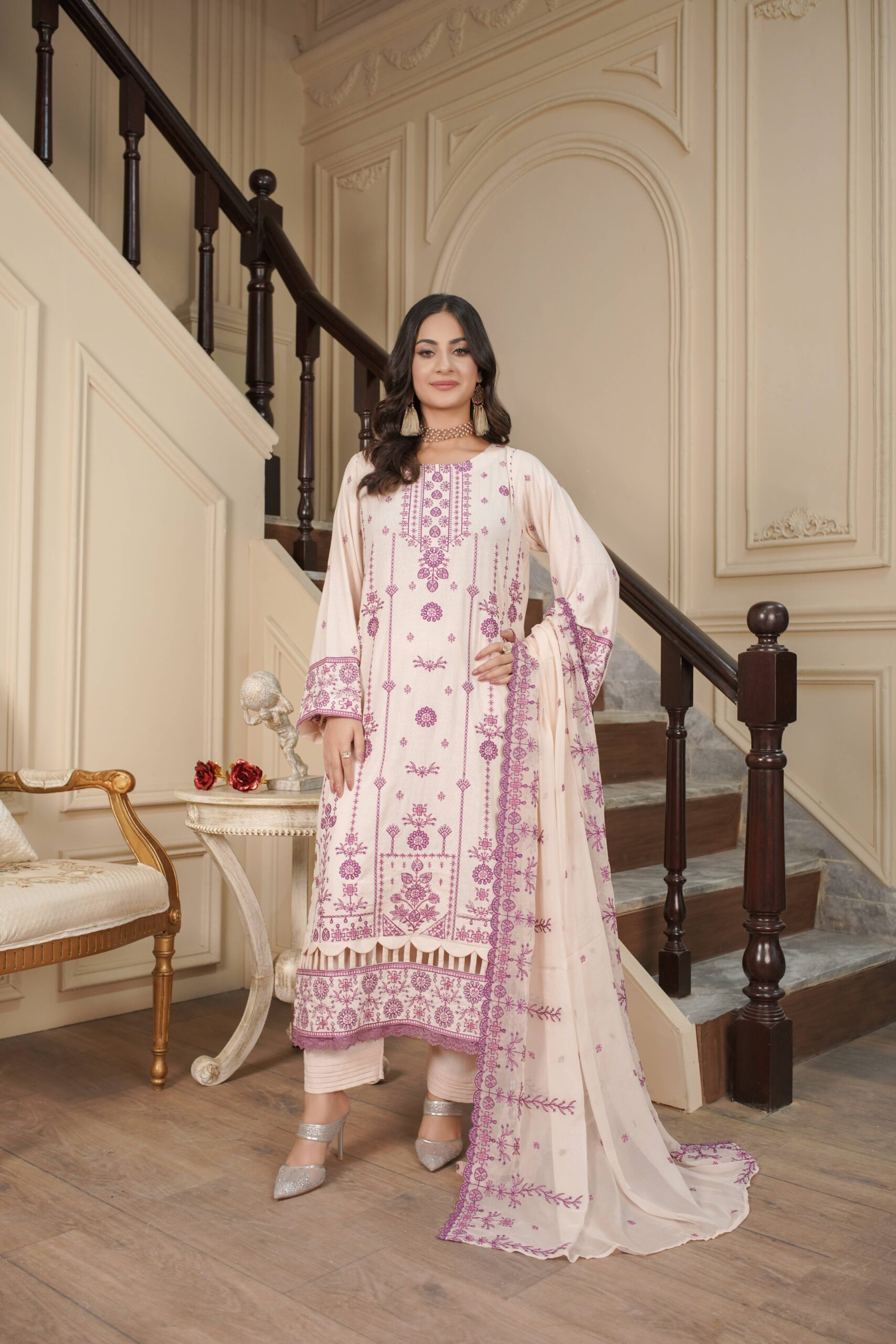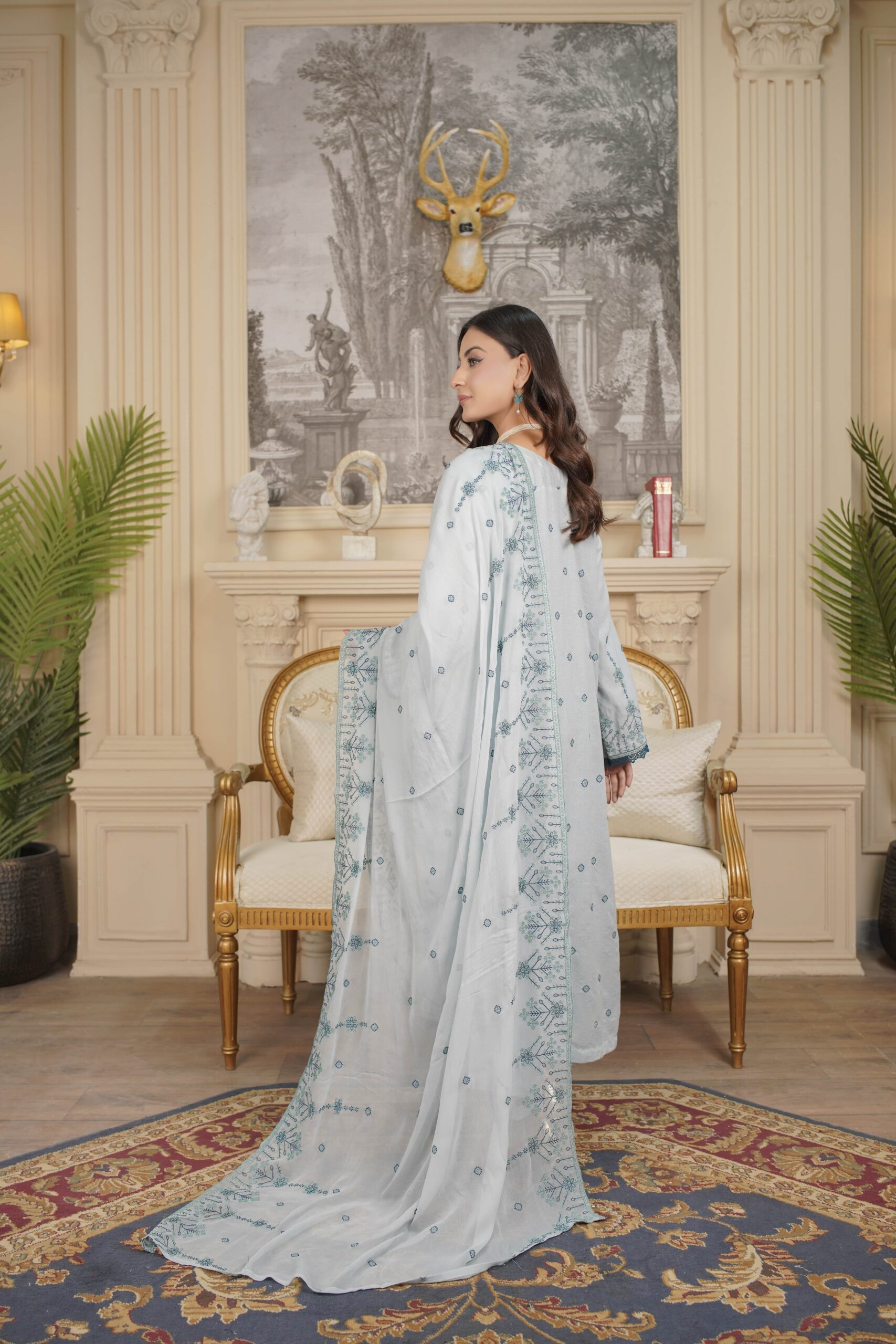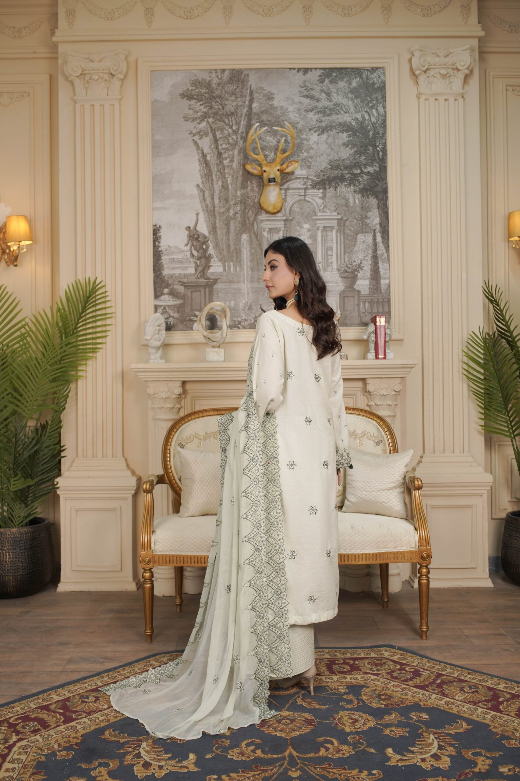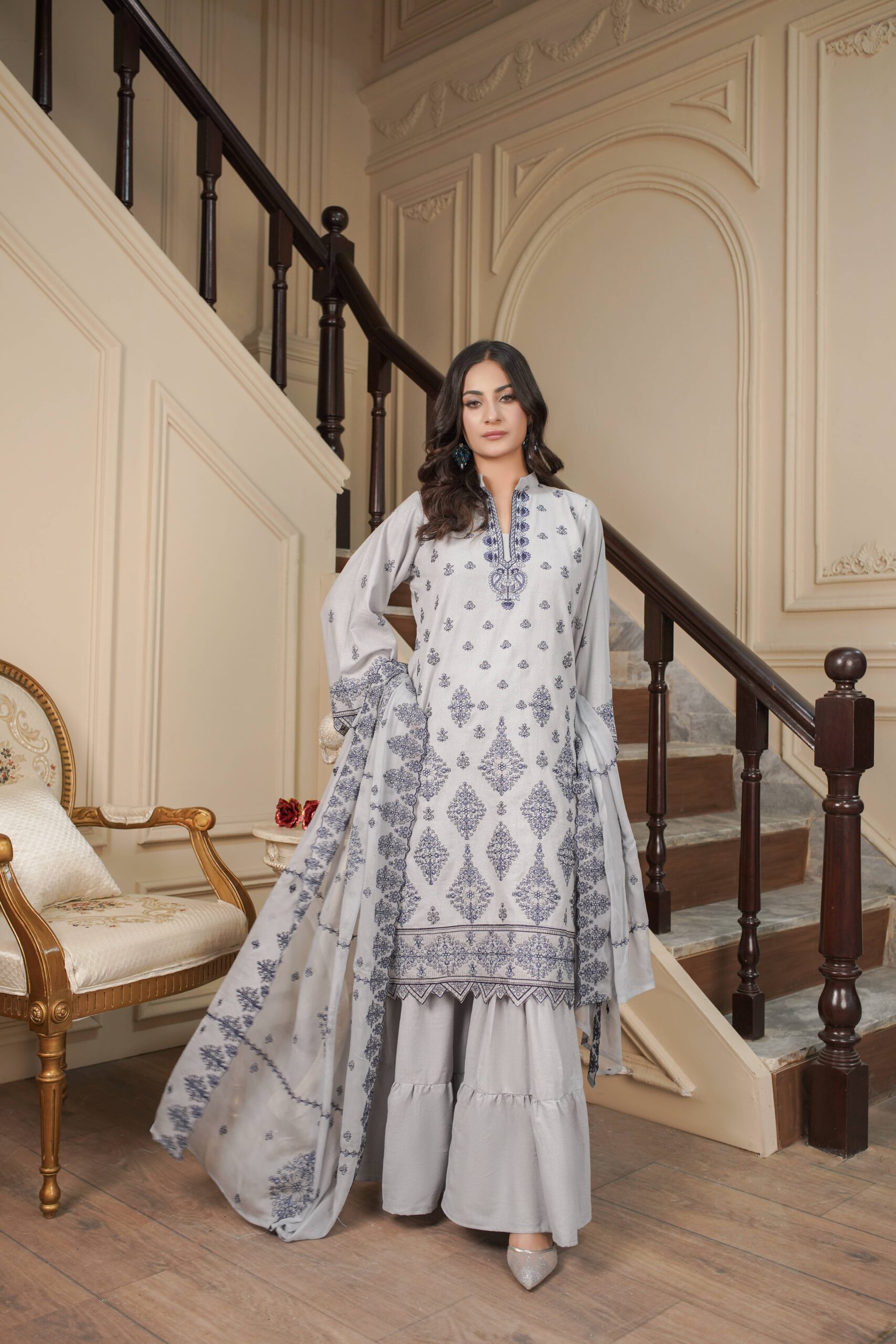 Paired with plain dyed trousers for a balanced and polished look, every outfit is elevated with a premium embroidered chiffon dupatta, offering lightness, flow, and sophistication. With its soft textures, classic silhouettes, and intricate detailing, the Gulfam Collection is perfect for winter festivities, cultural occasions, and graceful everyday wear.