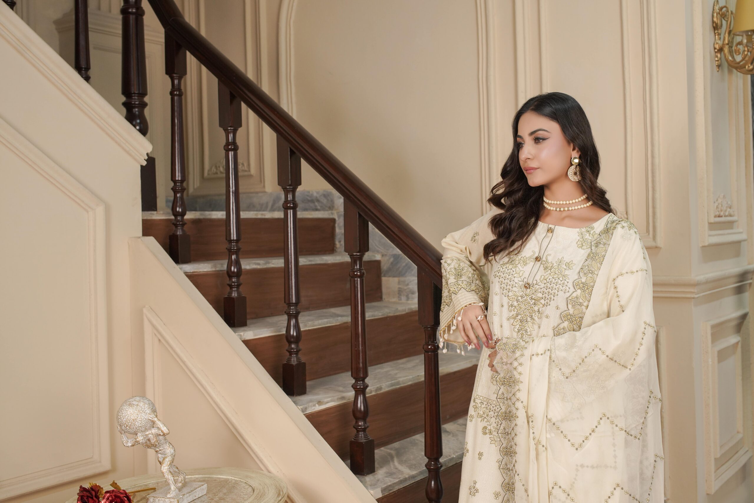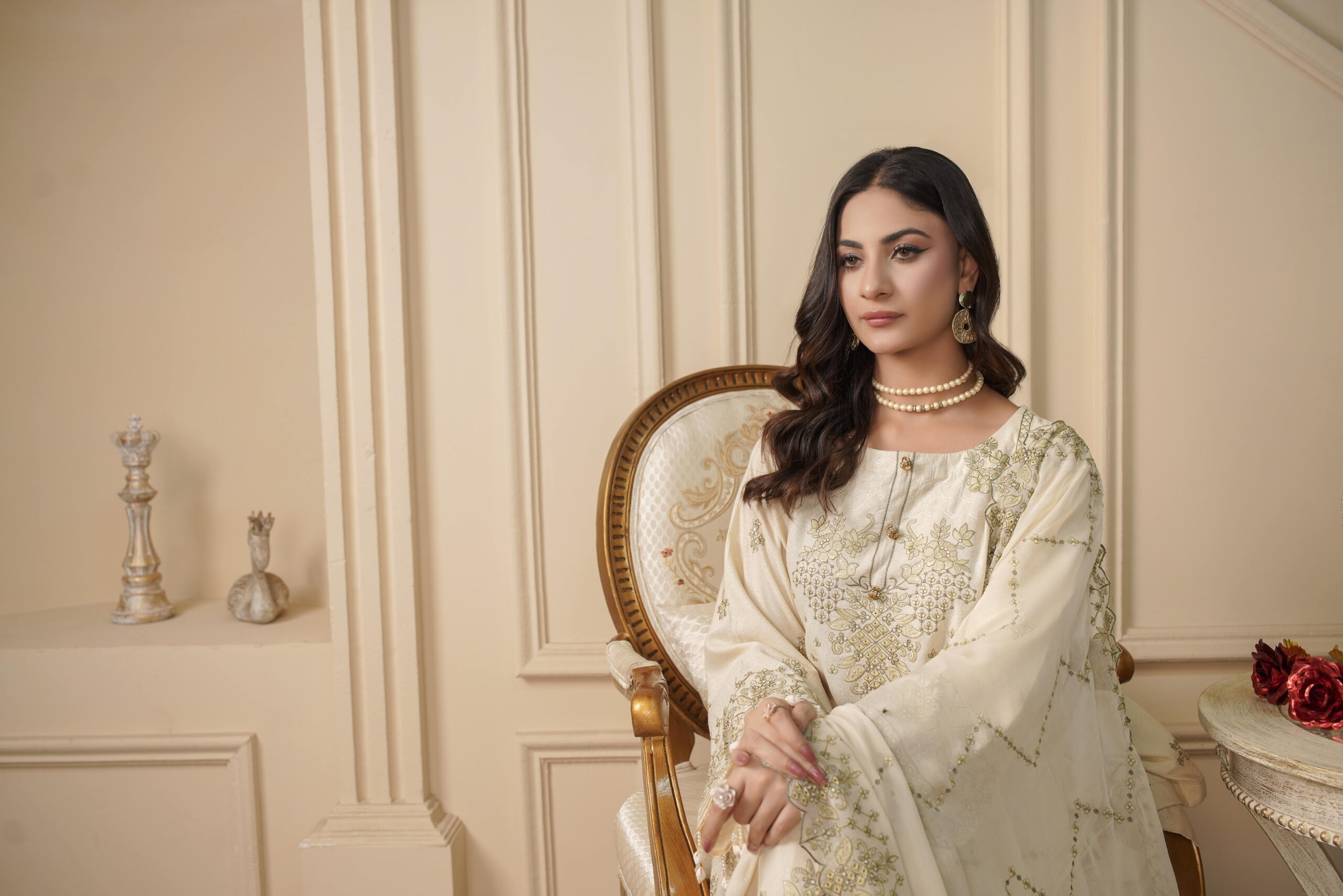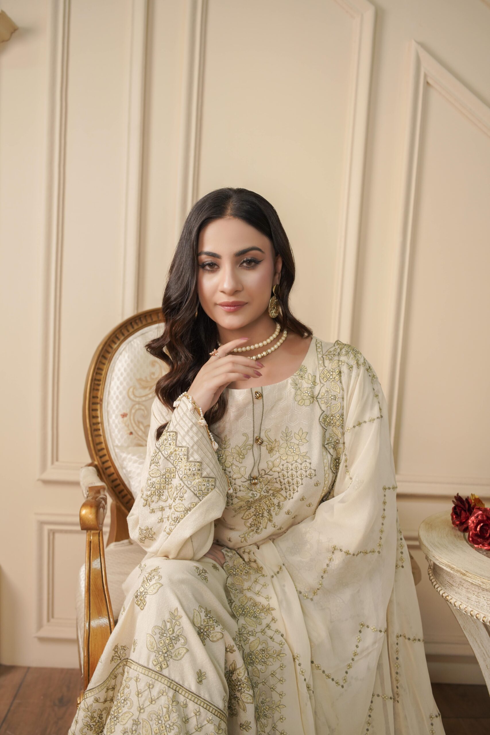 Paired with plain dyed trousers for a balanced and polished look, every outfit is elevated with a premium embroidered chiffon dupatta, offering lightness, flow, and sophistication. With its soft textures, classic silhouettes, and intricate detailing, the Gulfam Collection is perfect for winter festivities, cultural occasions, and graceful everyday wear.