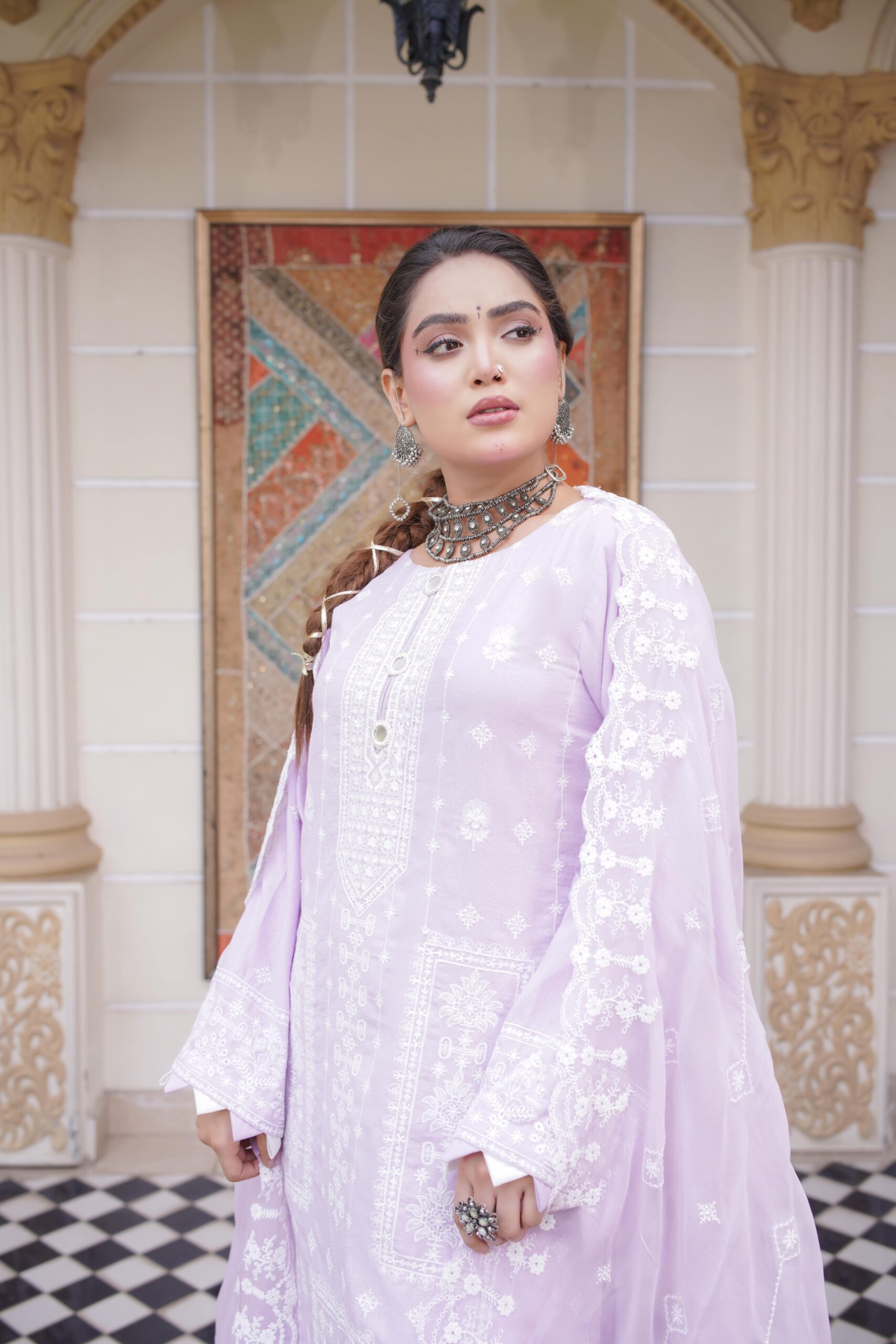 Mooray Piya is a graceful symphony of tradition and elegance, woven into a design that speaks to timeless beauty. Crafted from premium embroidered Karandi, this outfit showcases intricate embroidery on the front, back, and sleeves—exuding refined sophistication with every thread.
