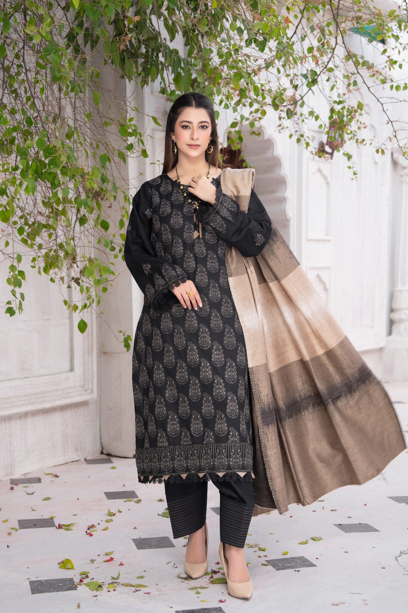 Paired with a plain dyed trouser for balance and comfort, the ensemble is completed with a pure pashmina shawl, exuding softness, warmth, and premium winter luxury. Anmool is made for women who adore classic winter fashion with a touch of royal charm — ideal for formal gatherings, seasonal festivities, and evening wear.