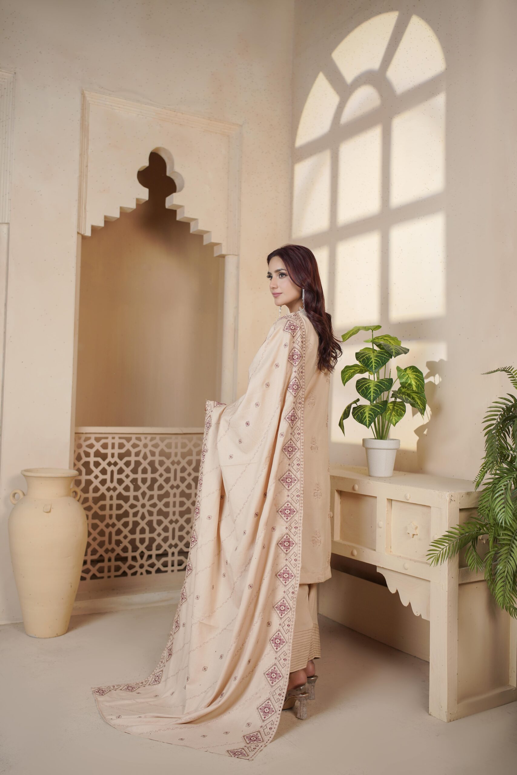 The luxurious Pure Pashmina Shawl completes the look with a soft, regal touch — perfect for winter gatherings, festive occasions, and formal events. Muhabat Nama blends traditional charm with modern finesse, making it a statement of elegance for every woman.