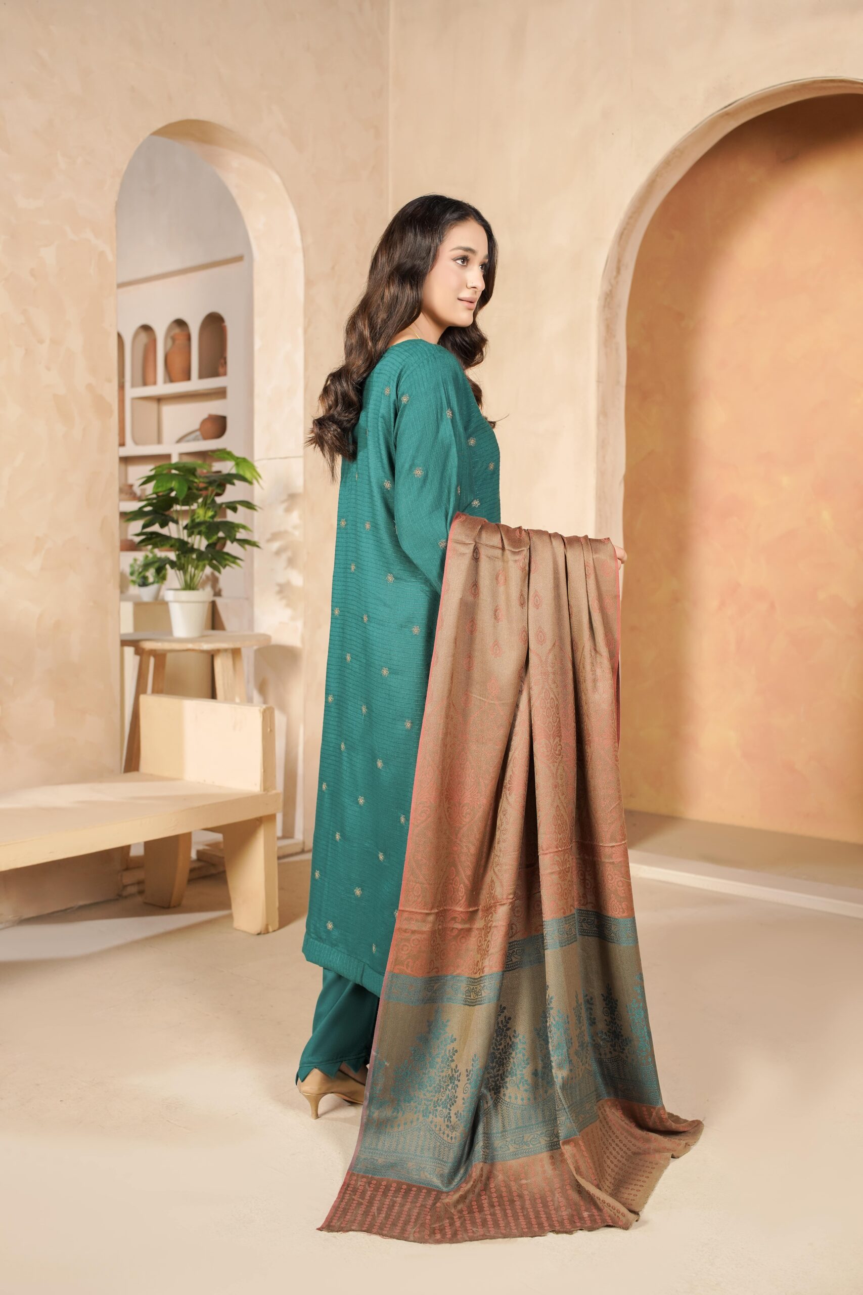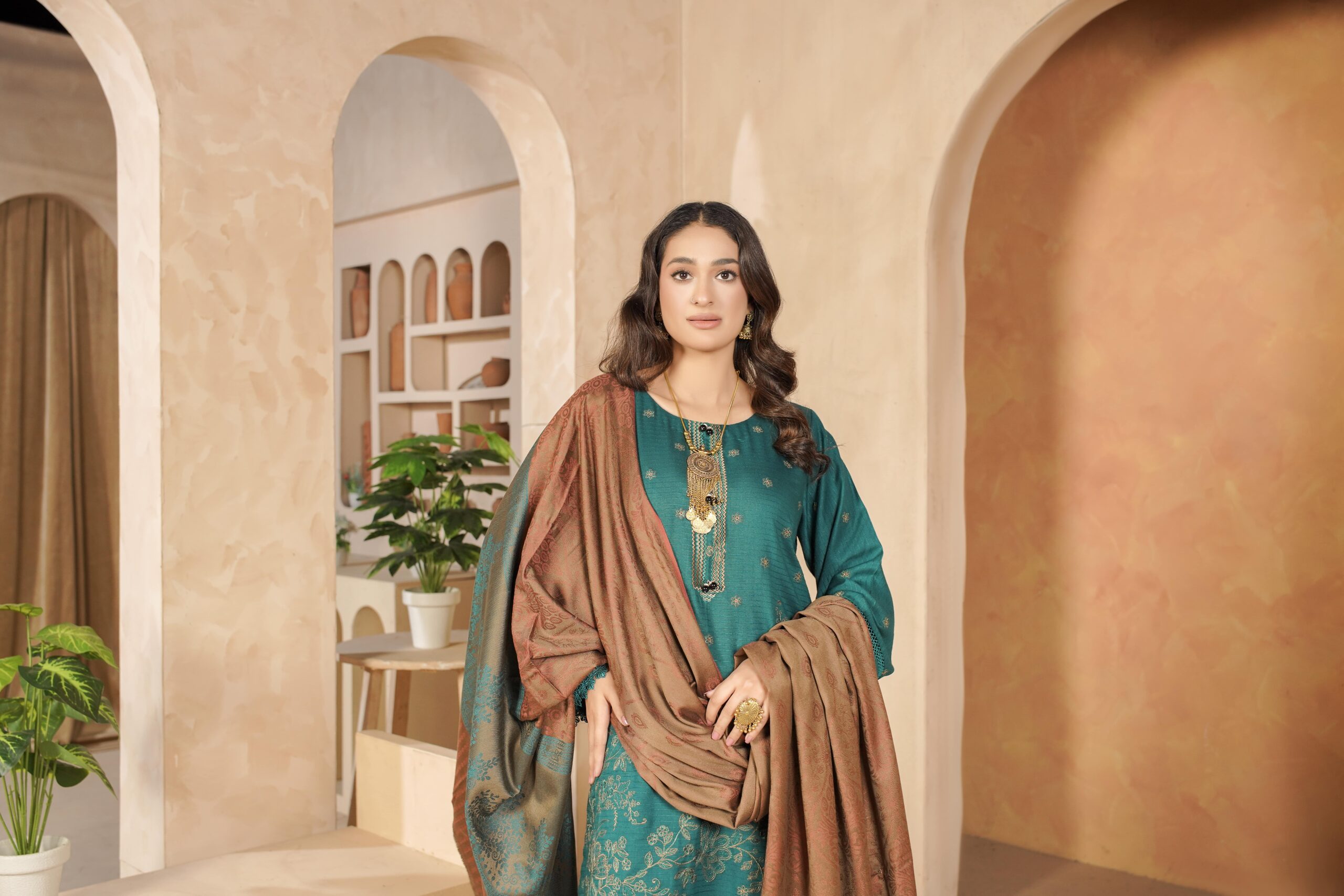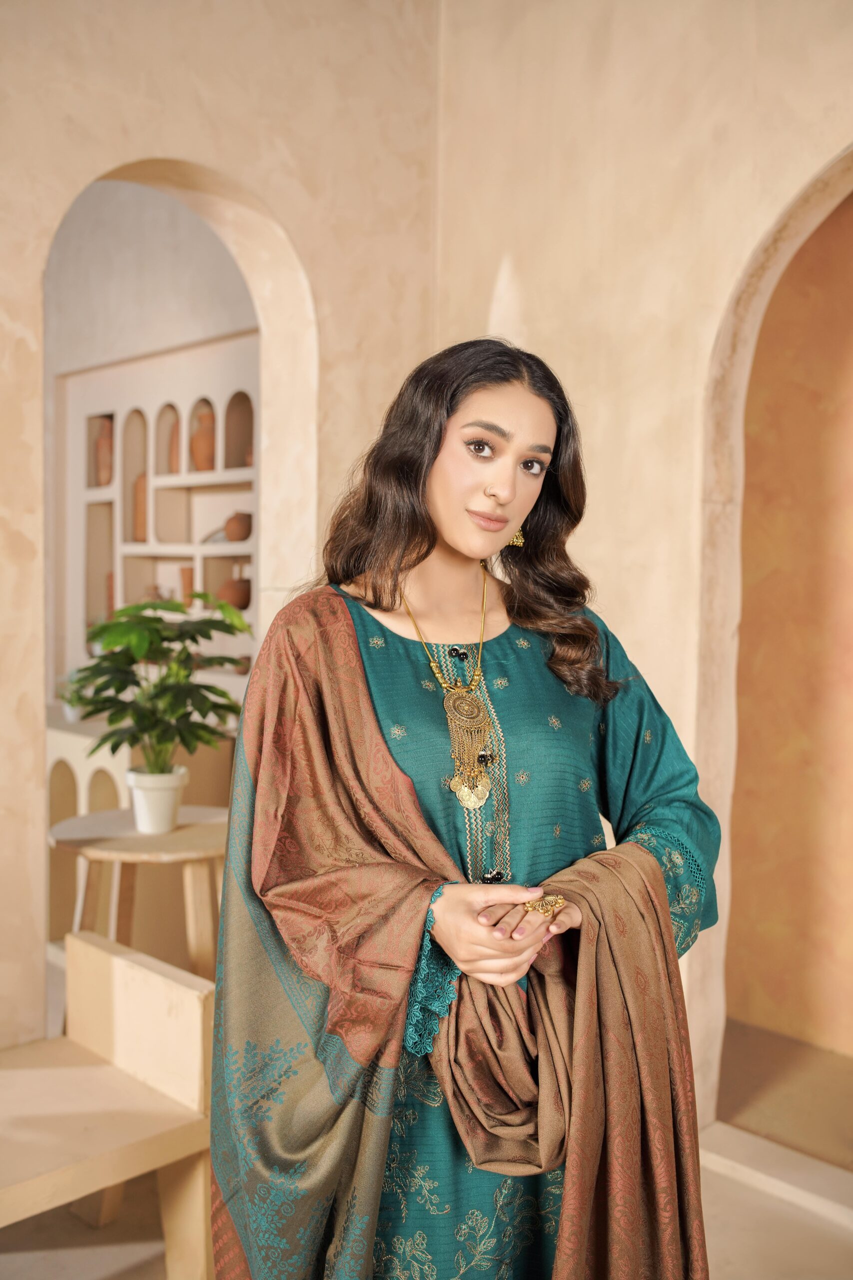 Manizay presents Sanghaar — a graceful winter ensemble that embodies sophistication and warmth. Crafted from premium embroidered Dhanak fabric, this outfit is a reflection of timeless artistry and refined elegance. The intricate embroidery on the front, back, and sleeves showcases exquisite craftsmanship, while the plain dyed trouser adds balance and simplicity.