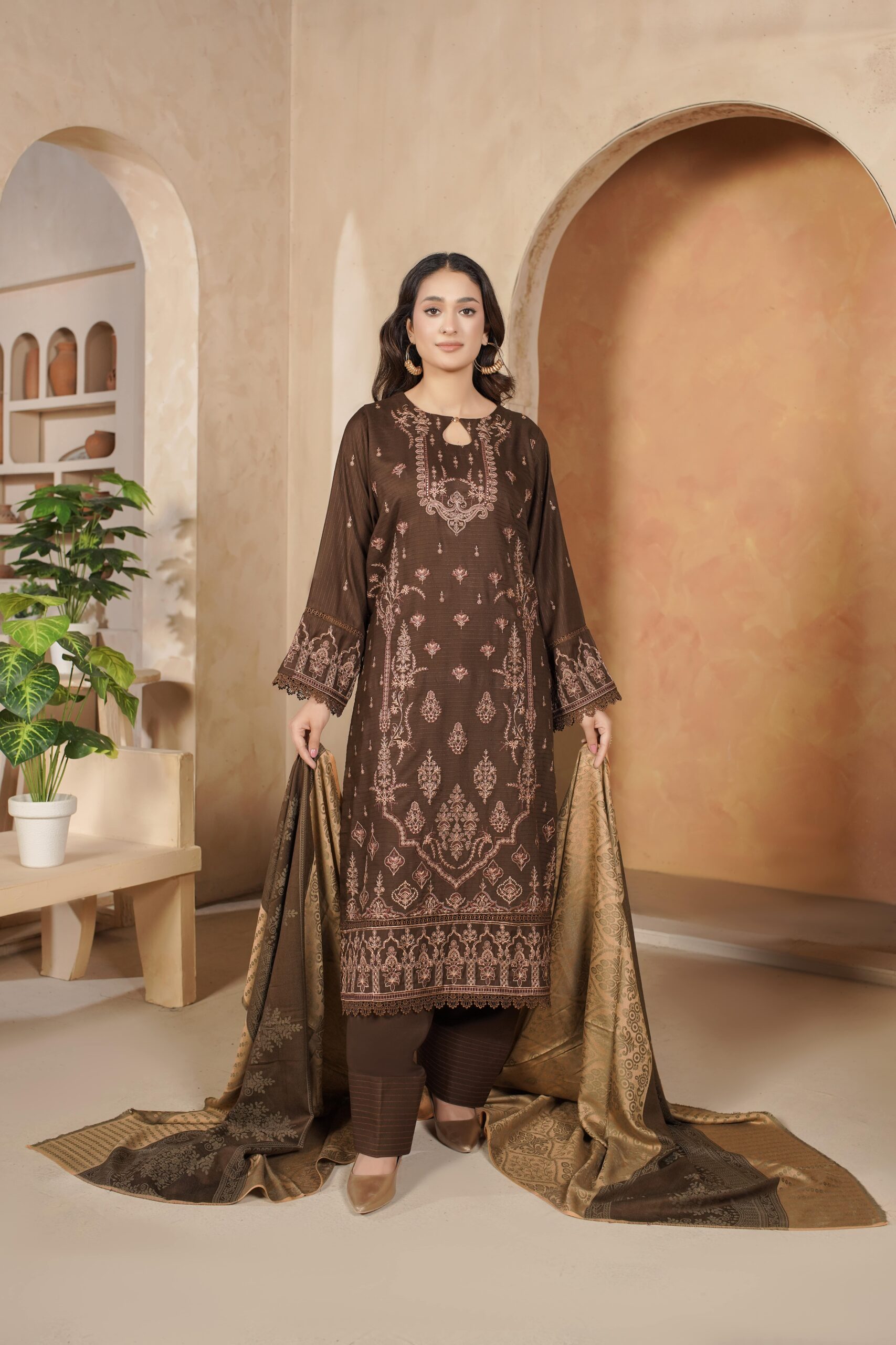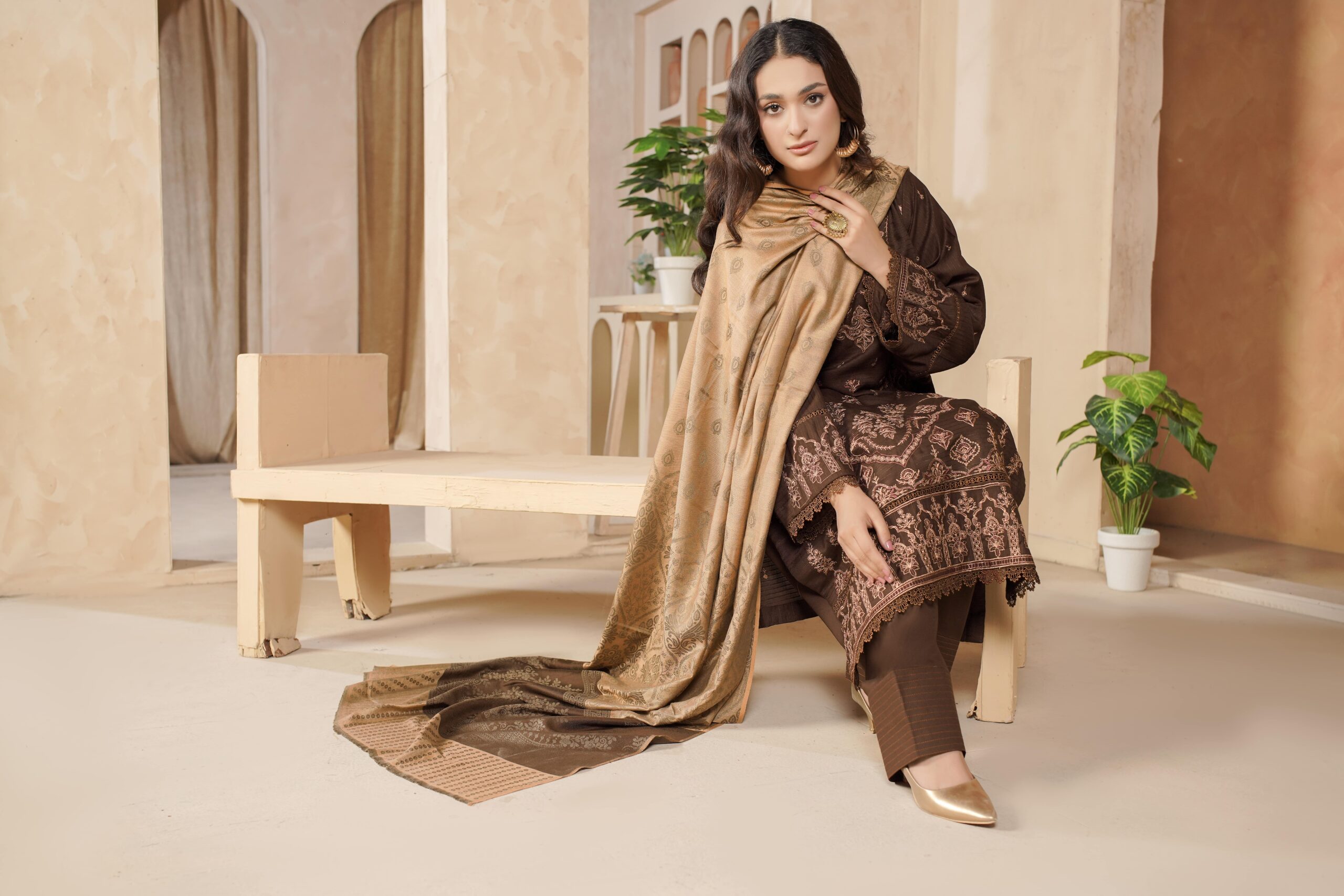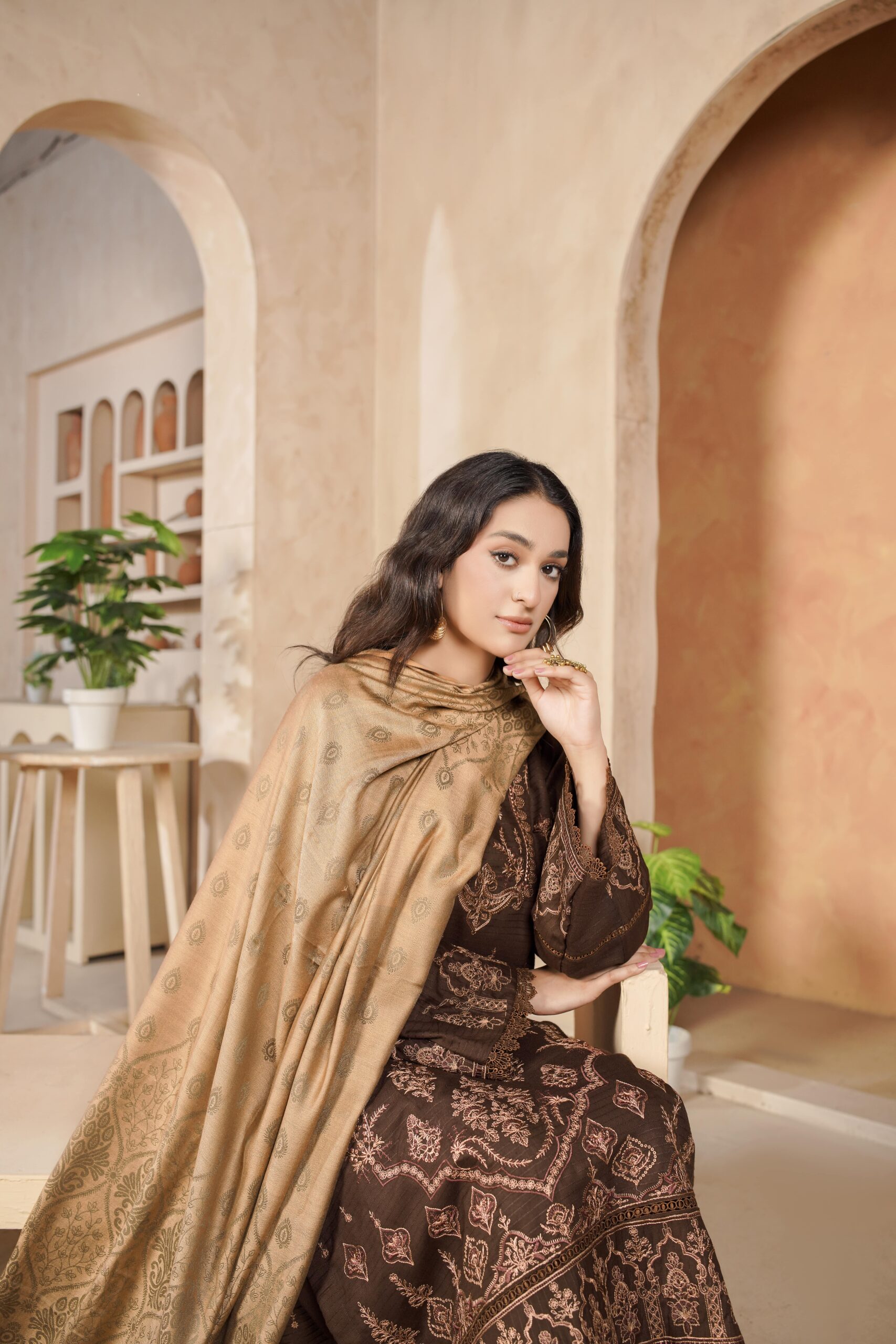 Manizay presents Sanghaar — a graceful winter ensemble that embodies sophistication and warmth. Crafted from premium embroidered Dhanak fabric, this outfit is a reflection of timeless artistry and refined elegance. The intricate embroidery on the front, back, and sleeves showcases exquisite craftsmanship, while the plain dyed trouser adds balance and simplicity.