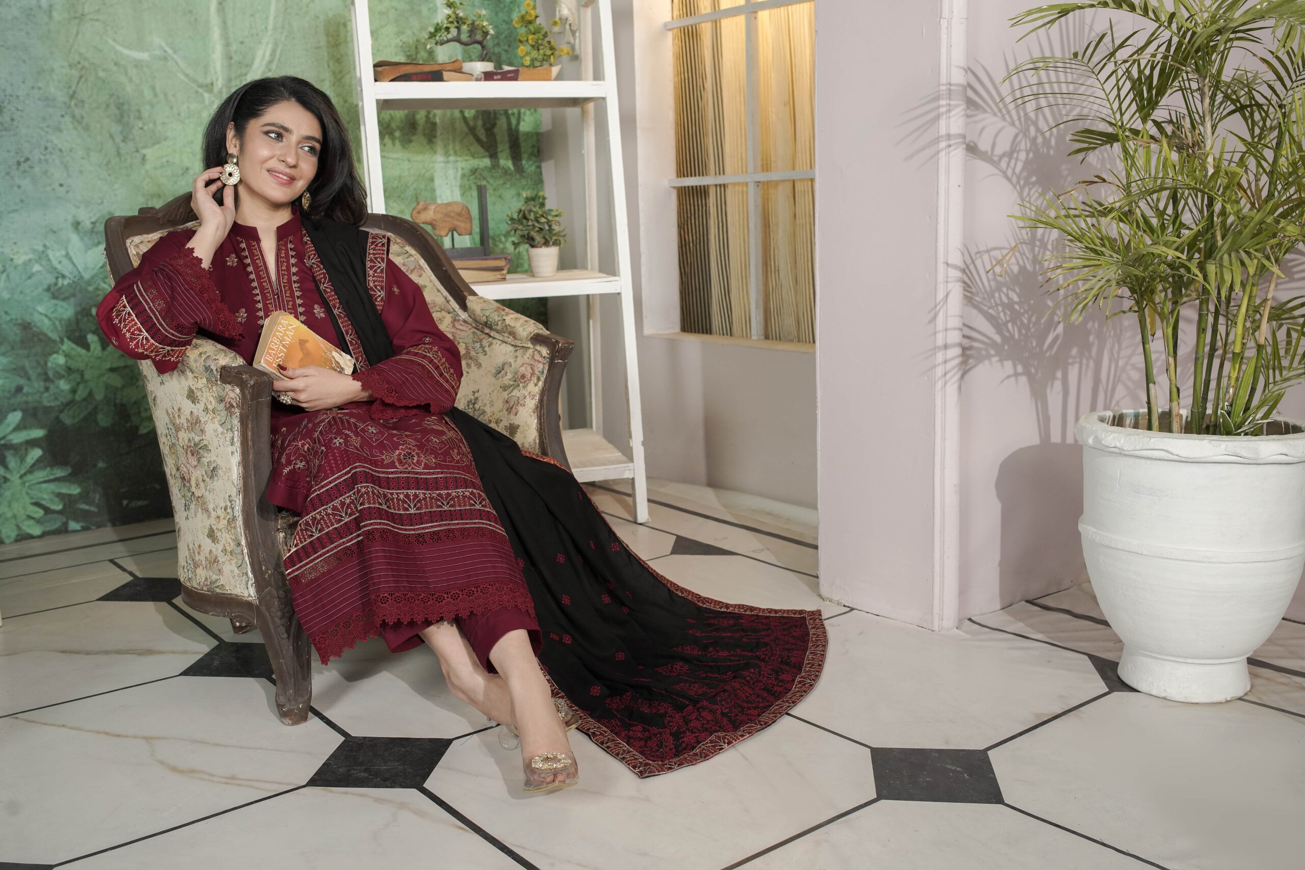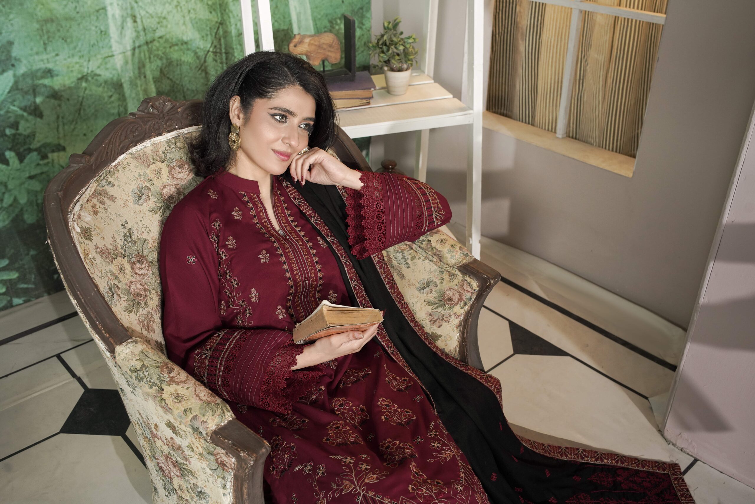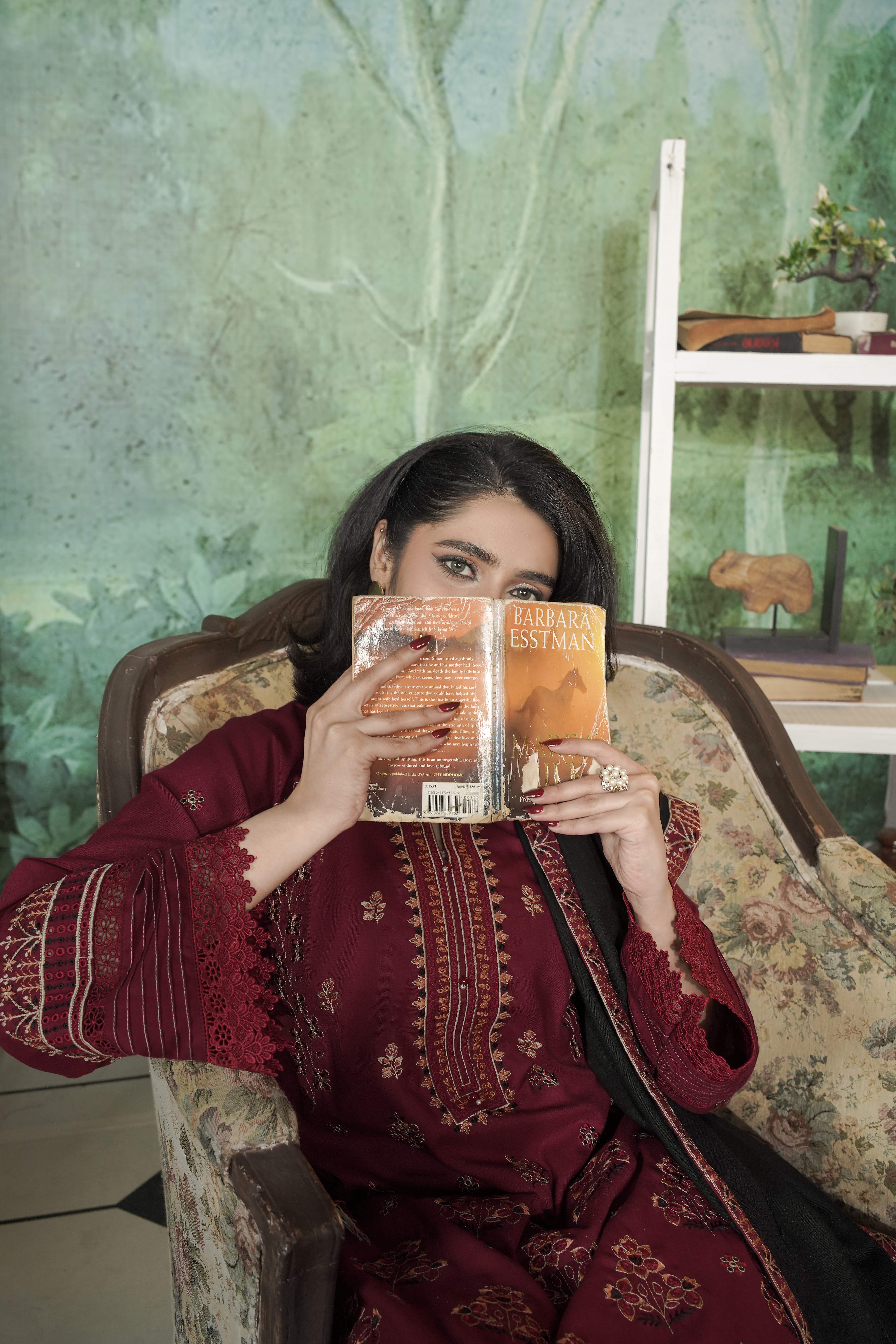 The outfit is completed with a heavy embroidered Dhanak shawl that enhances the overall charm and provides cozy warmth during colder days. Umeed Khush Rang is perfect for winter gatherings, festive occasions, and formal evenings, offering a graceful appearance with lasting comfort.