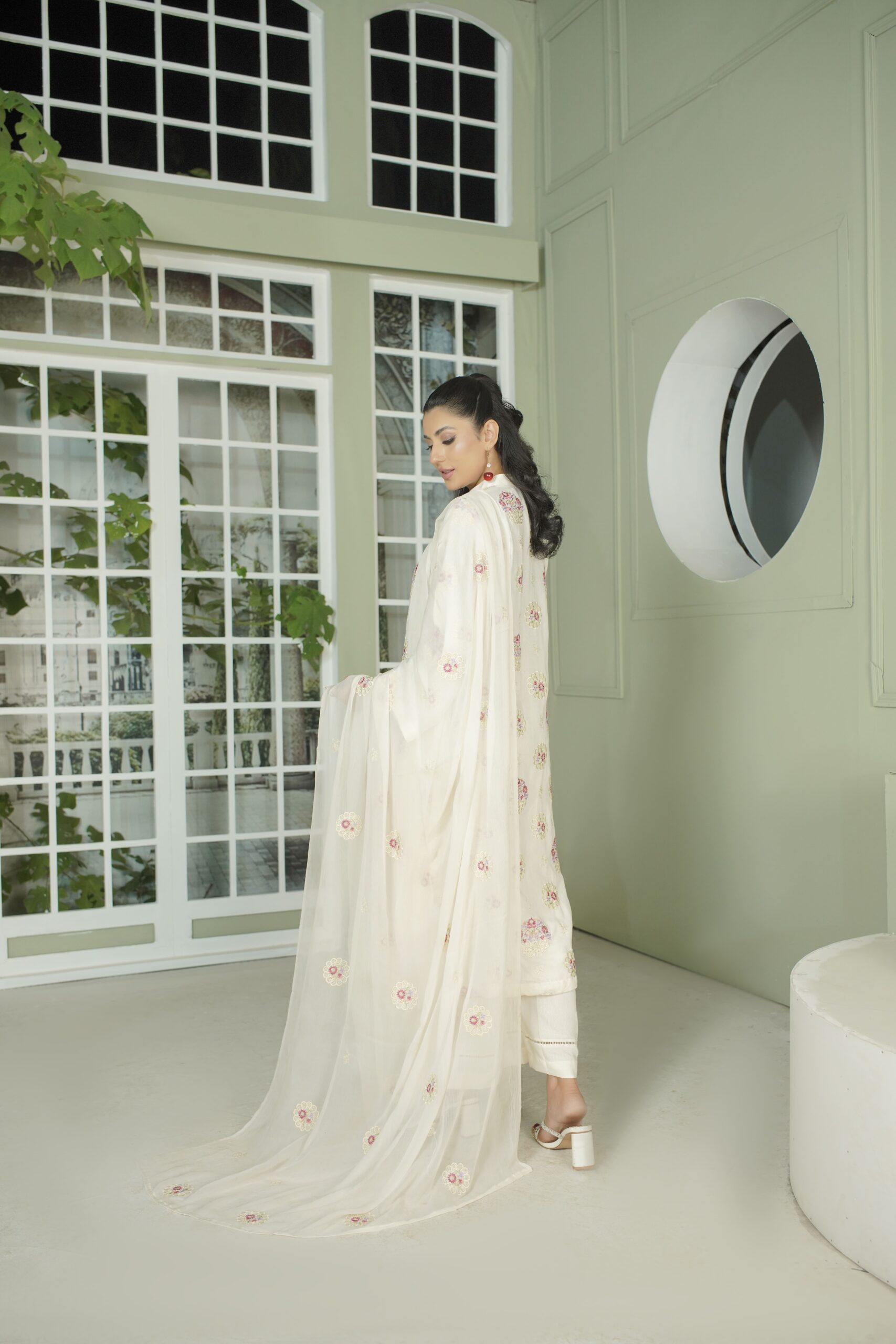 Paired with a plain dyed trouser for a timeless silhouette, every ensemble is completed with a premium embroidered Crinkle dupatta, adding lightness and textured sophistication. With its cozy fabric, graceful detailing, and versatile appeal, Gul e Gulzar is ideal for seasonal gatherings, cultural events, and everyday luxury.