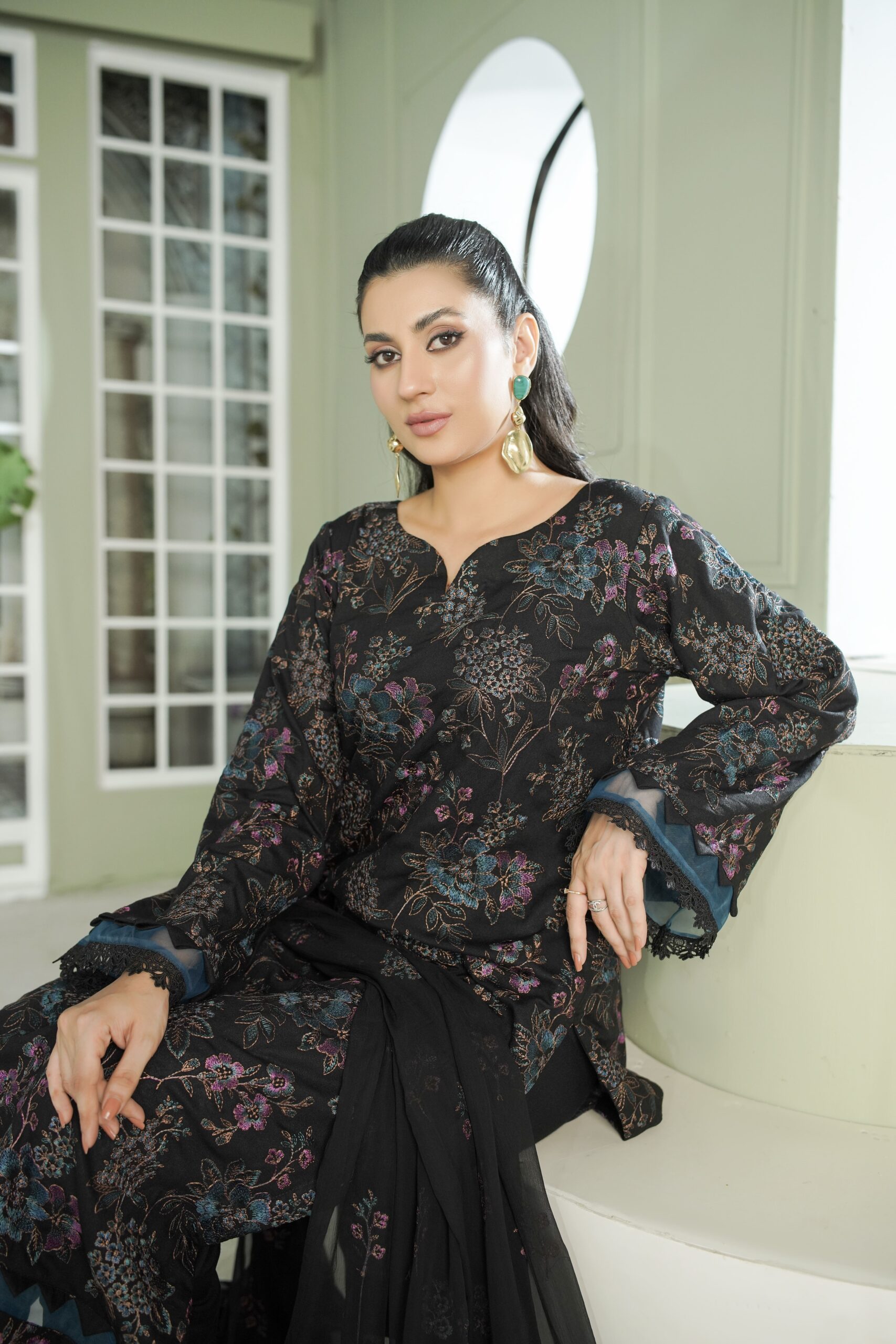 Paired with a plain dyed trouser for a timeless silhouette, every ensemble is completed with a premium embroidered Crinkle dupatta, adding lightness and textured sophistication. With its cozy fabric, graceful detailing, and versatile appeal, Gul e Gulzar is ideal for seasonal gatherings, cultural events, and everyday luxury.