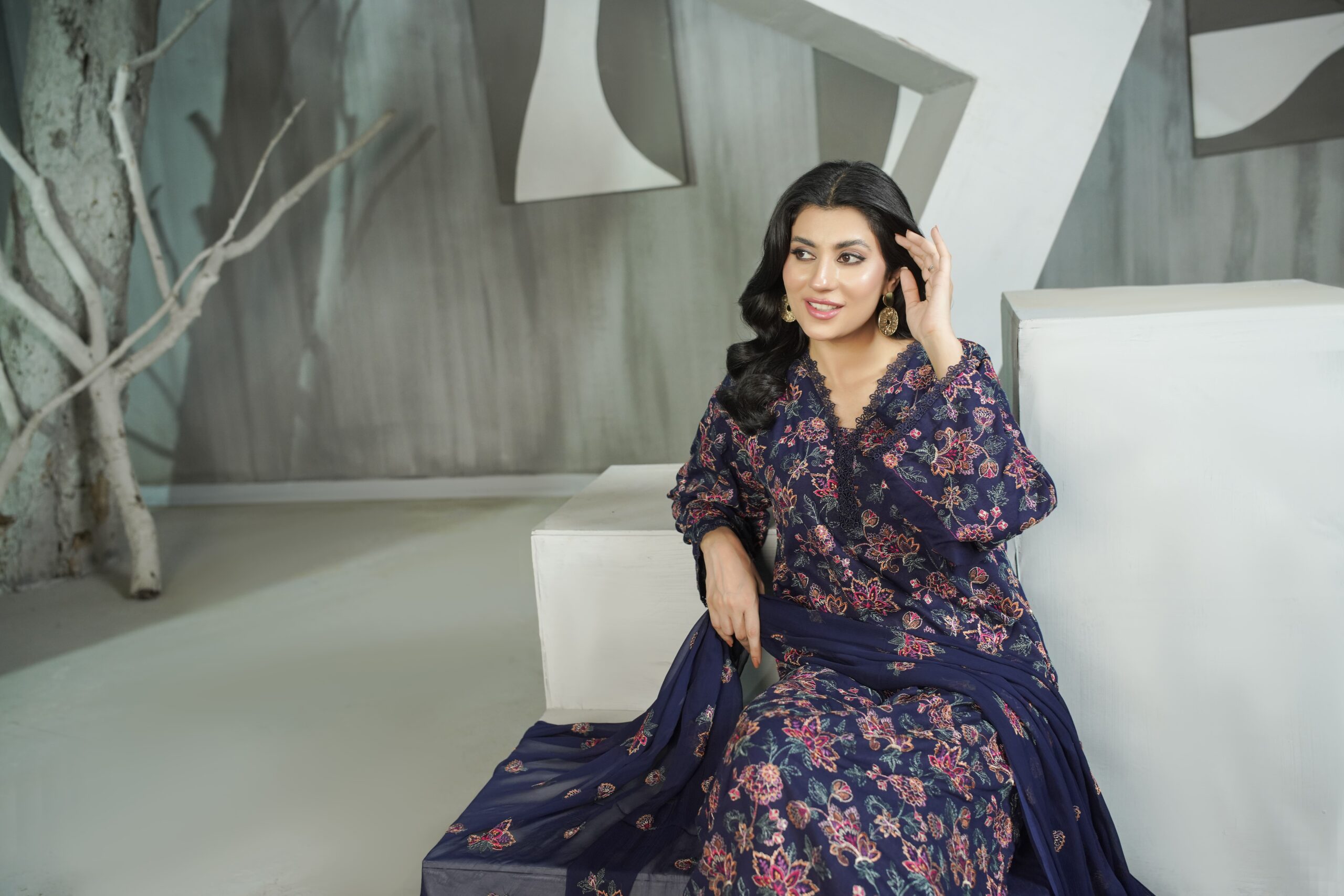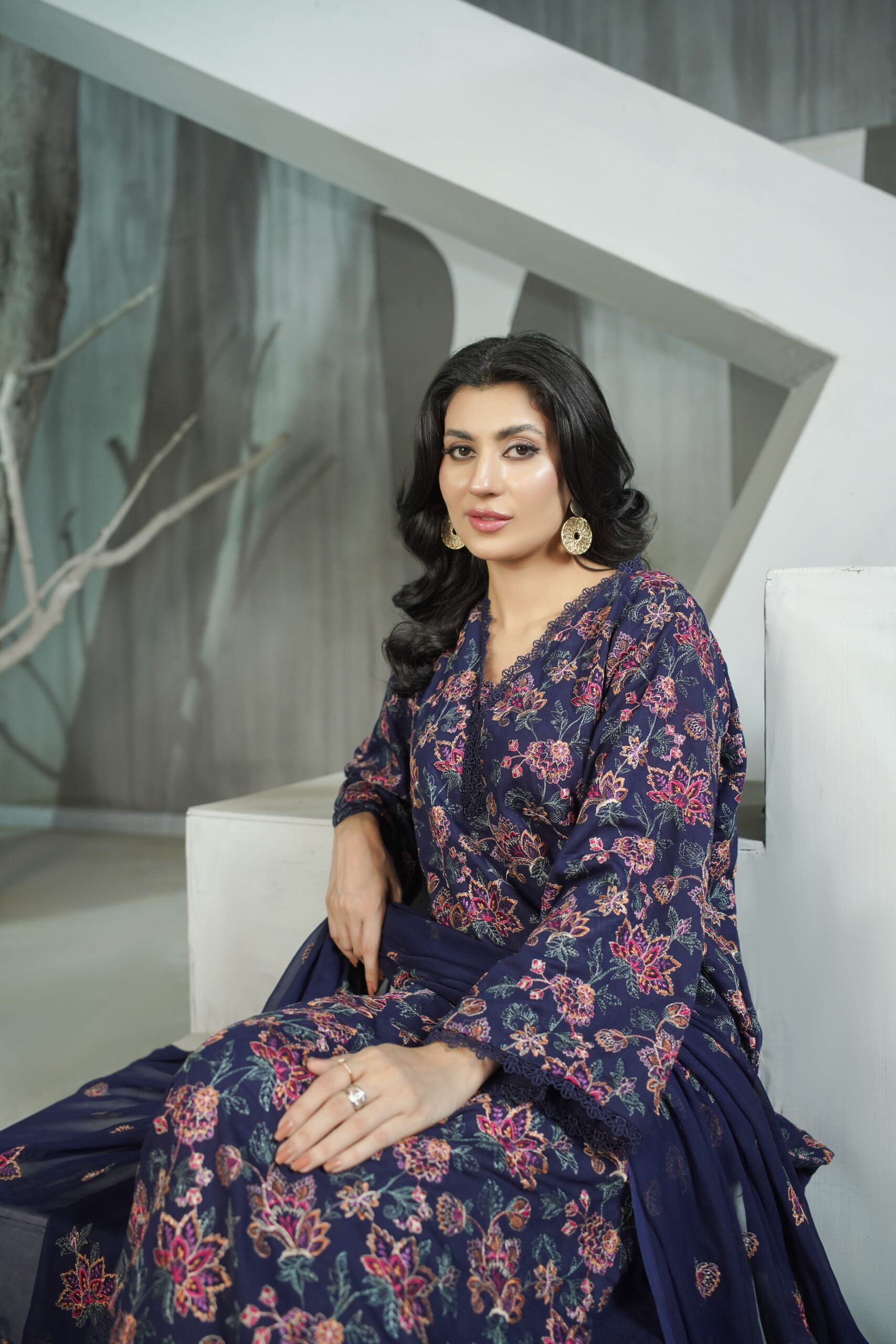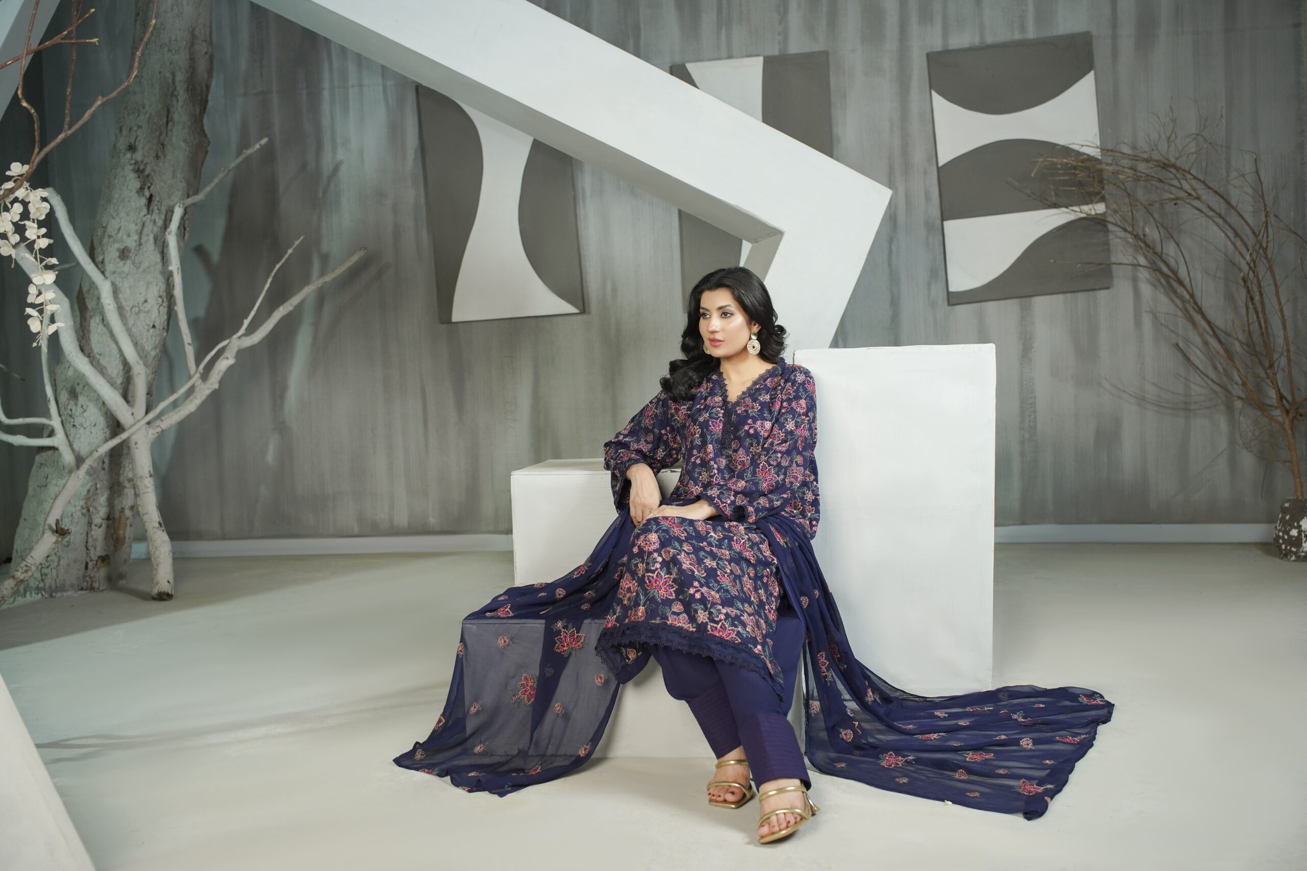 Paired with a plain dyed trouser for a timeless silhouette, every ensemble is completed with a premium embroidered Crinkle dupatta, adding lightness and textured sophistication. With its cozy fabric, graceful detailing, and versatile appeal, Gul e Gulzar is ideal for seasonal gatherings, cultural events, and everyday luxury.