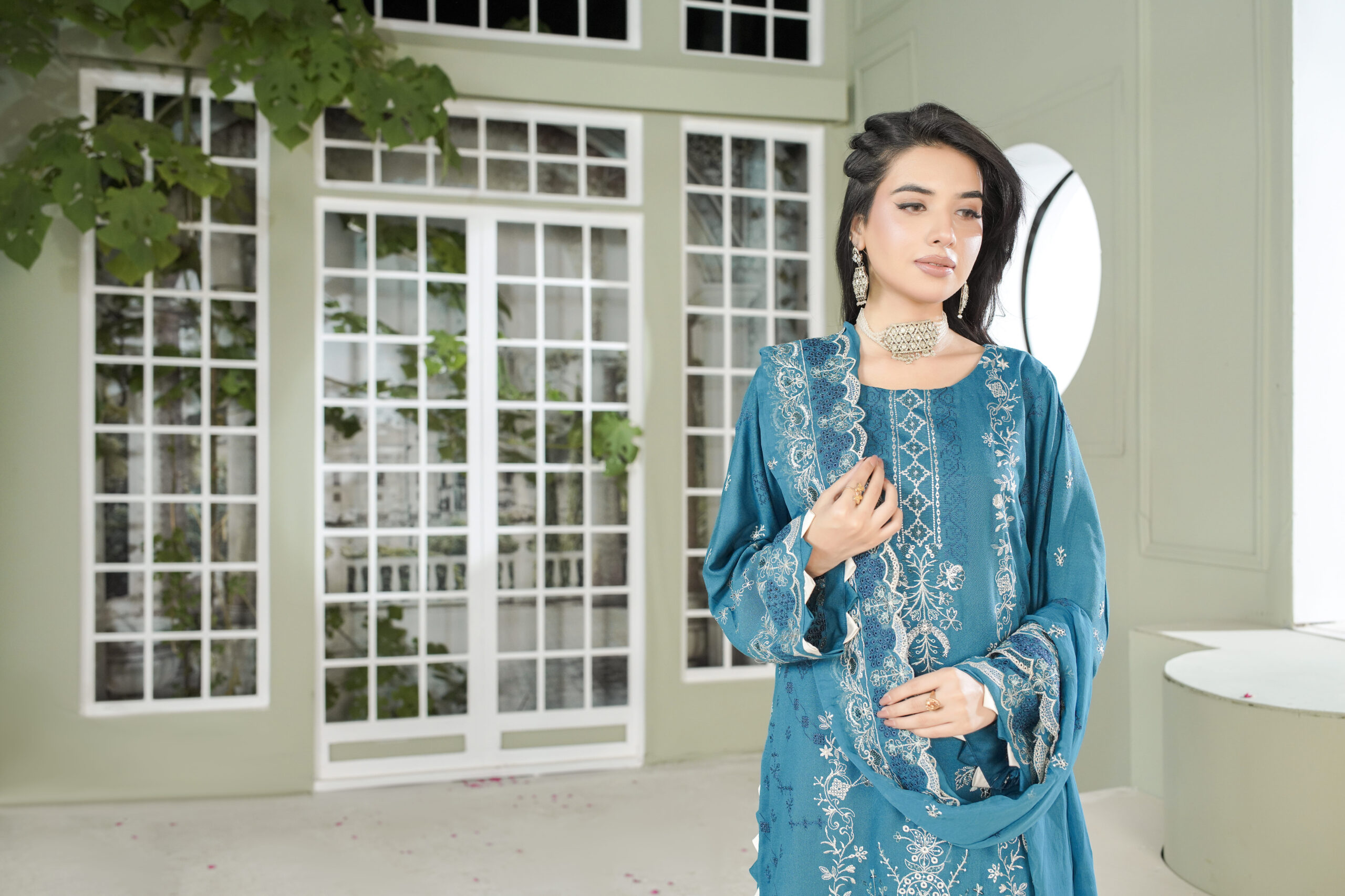 The Mehrma Collection by Manizay is a graceful blend of winter warmth and timeless sophistication, crafted for women who embody elegance with ease. Made from premium embroidered Winter Karandi, each piece showcases intricate embroidery on the front, back, and sleeves—highlighting refined craftsmanship and seasonal charm.