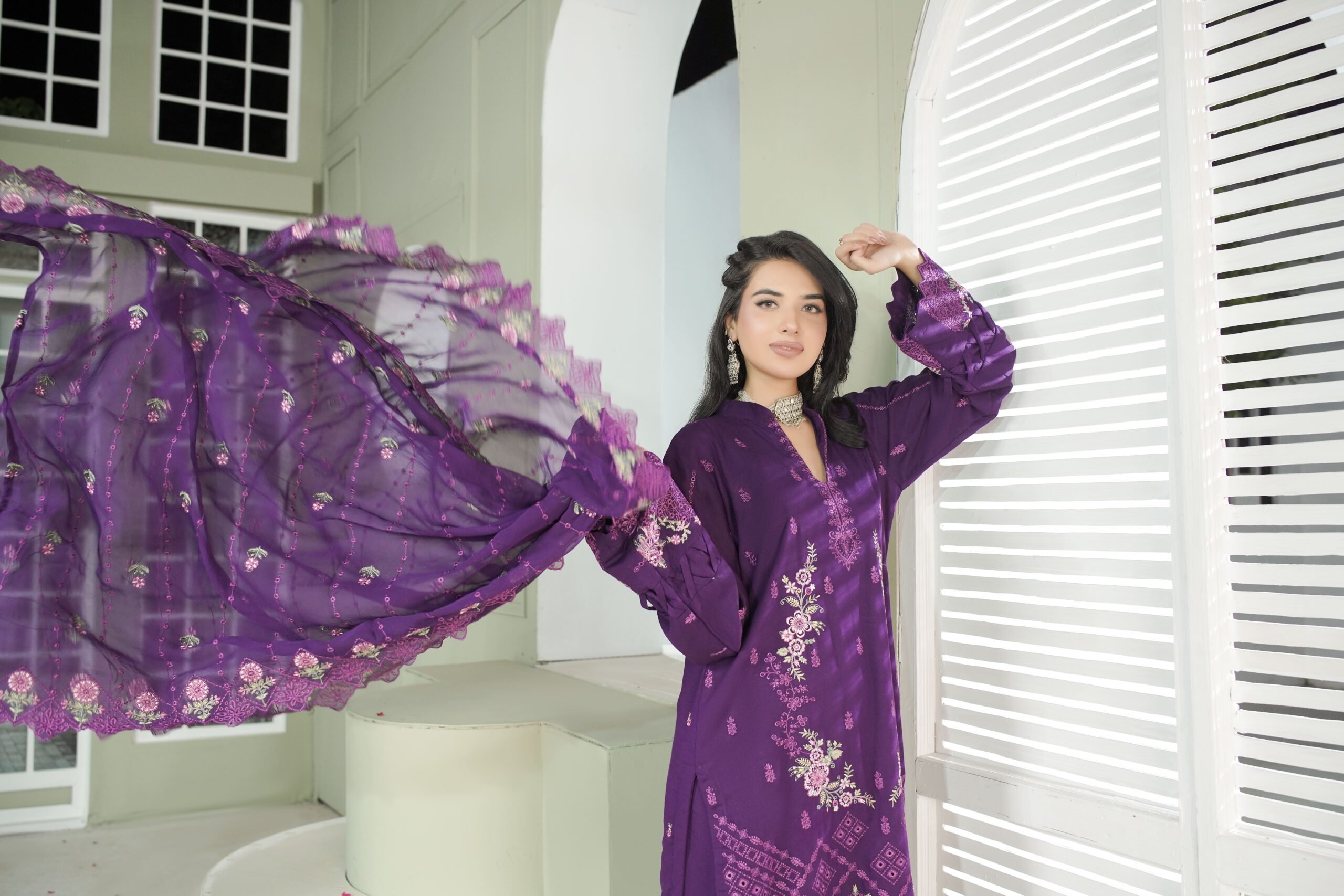 Finished with a plain dyed trouser for a classic balance, the ensemble is paired with a premium embroidered Crinkle dupatta, bringing fluidity, texture, and subtle elegance to the look. With its soft winter fabric, delicate embellishments, and versatile design, Mehrma is perfect for festive evenings, cultural occasions, and graceful everyday styling.