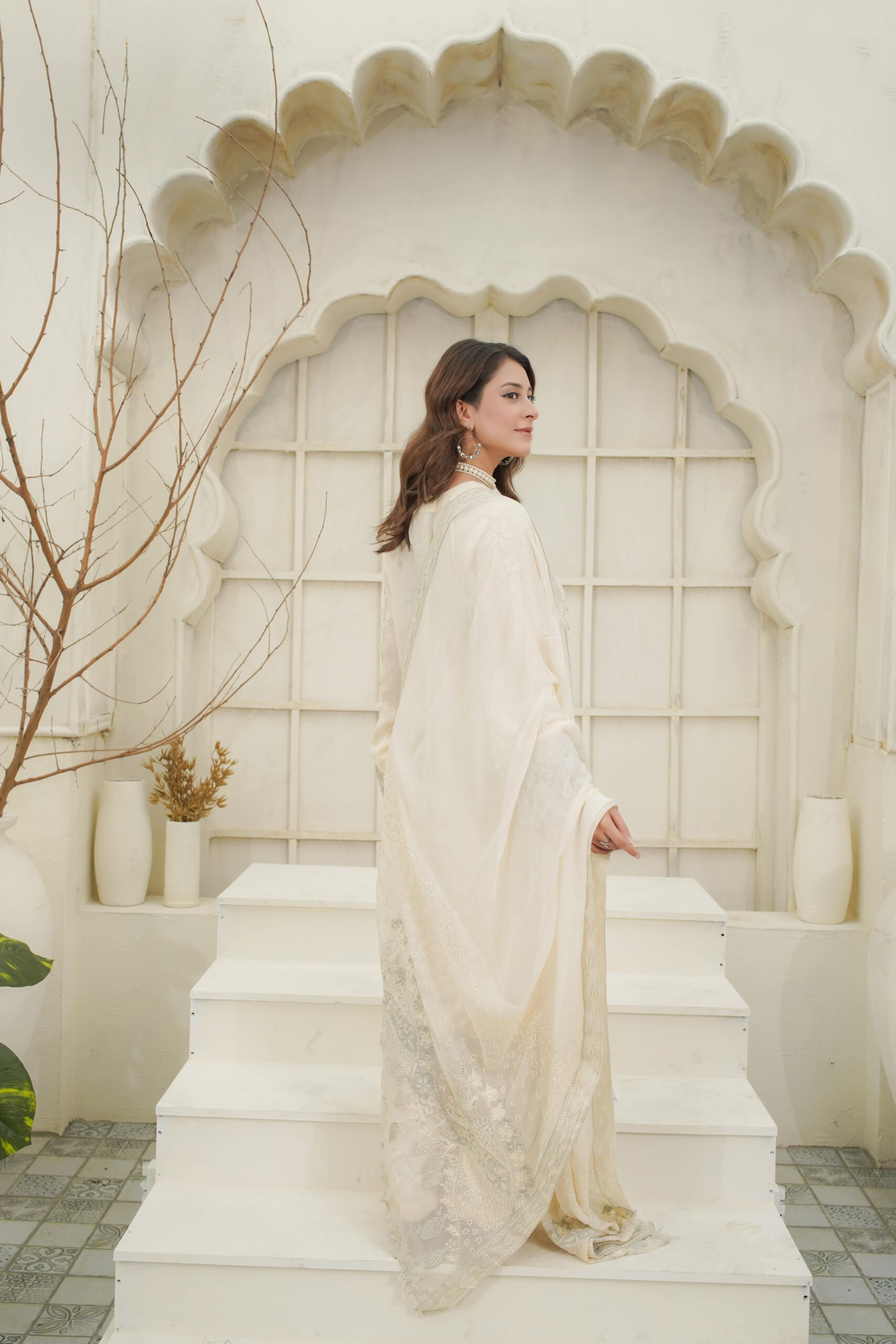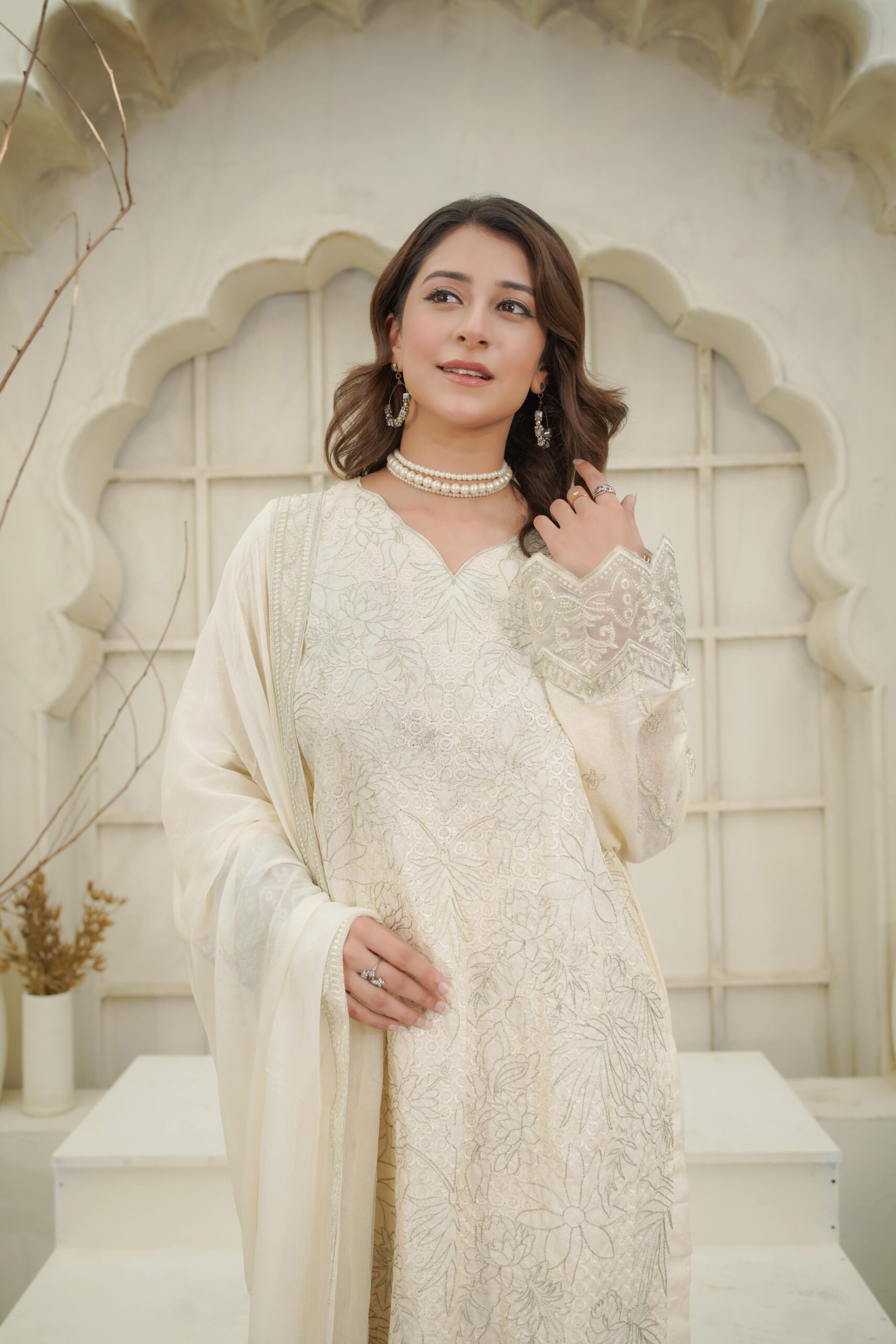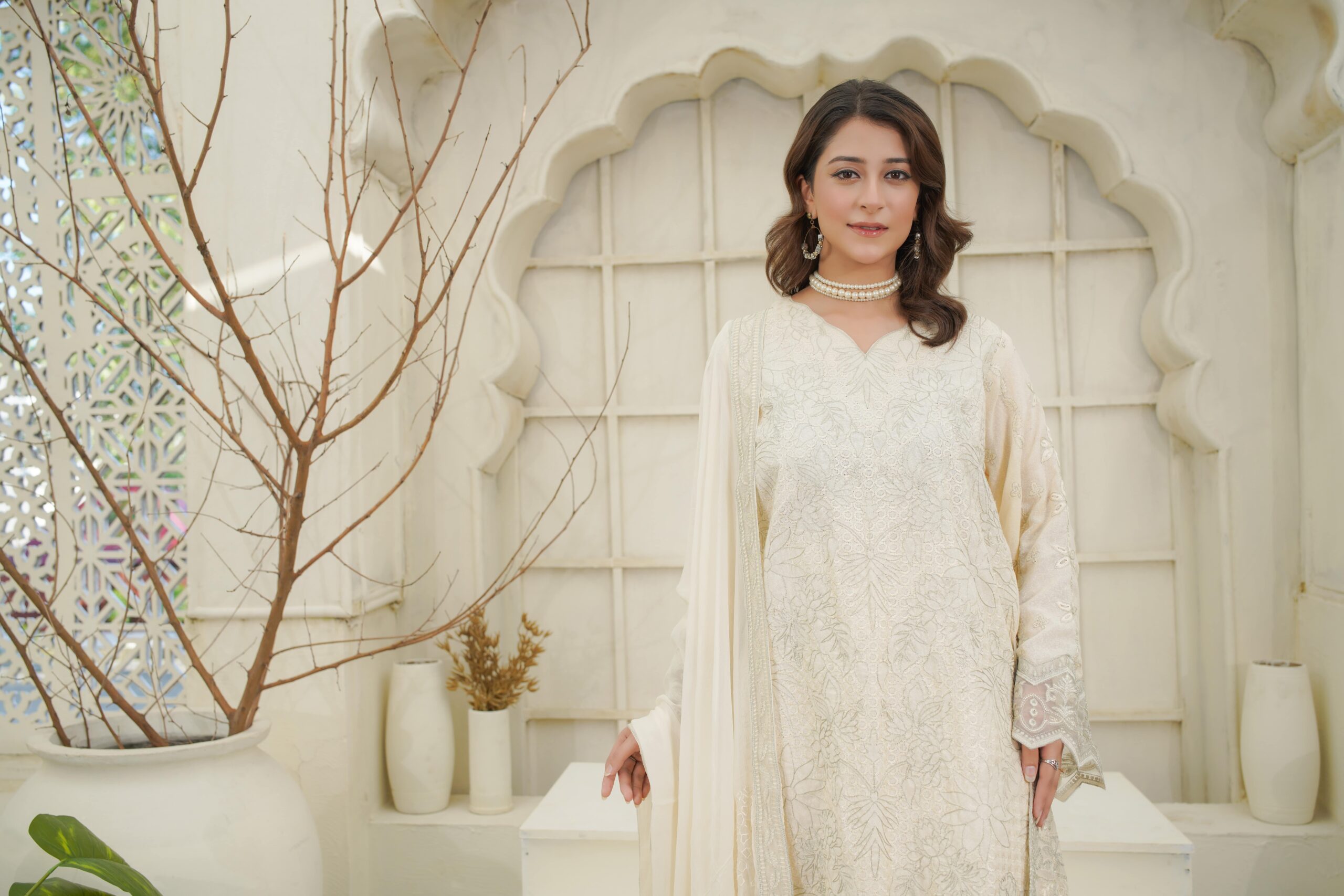 RANG E ISHQ is a masterpiece that embodies passion, grace, and timeless sophistication. Crafted from premium embroidered Karandi, this ensemble showcases refined embroidery on the front, back, and sleeves, radiating a sense of luxury and elegance. The plain dyed trouser balances the rich detailing of the shirt, ensuring a graceful and complete look.