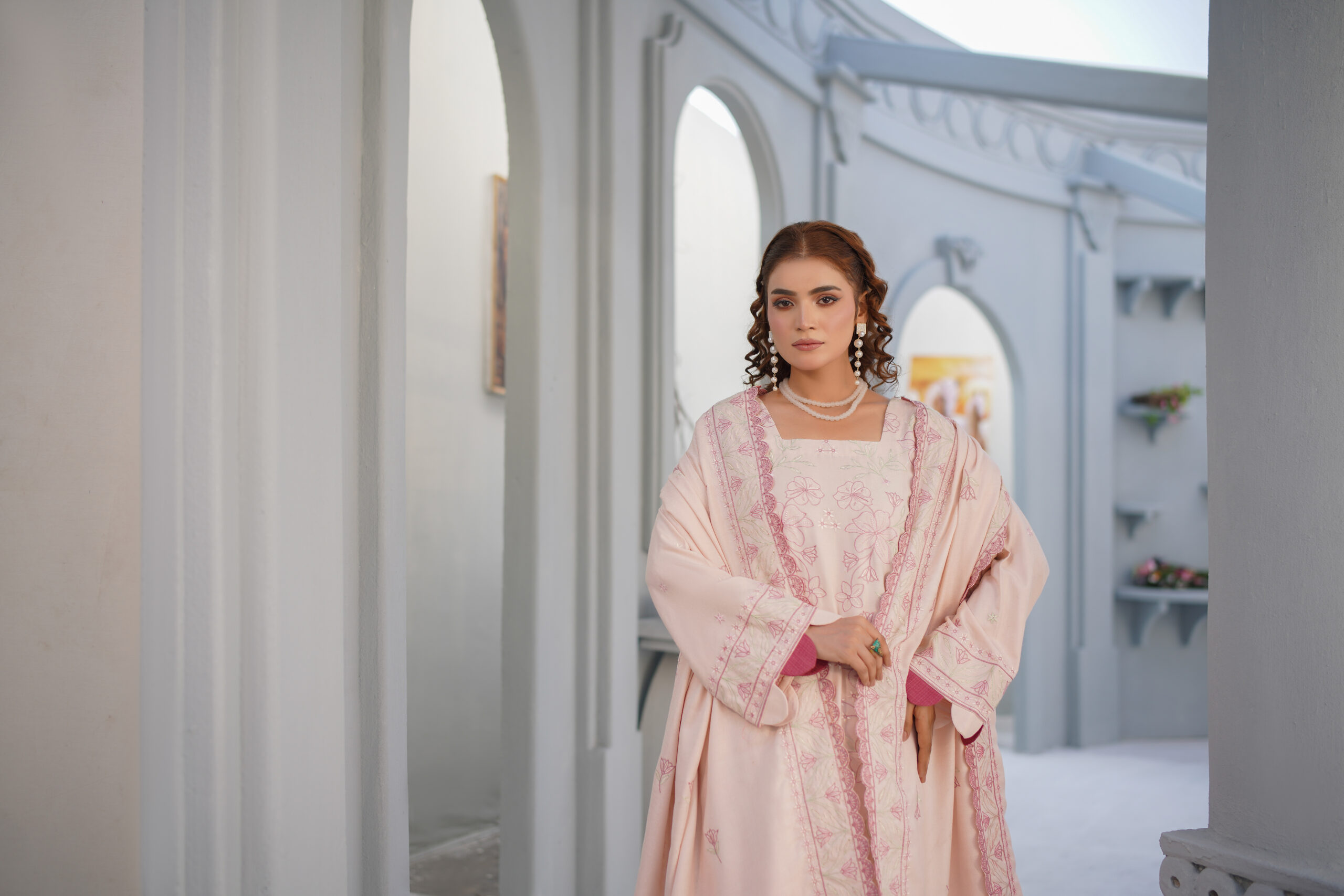 Premium Embroidered Peach Leather With Embroidered Wool Shawl