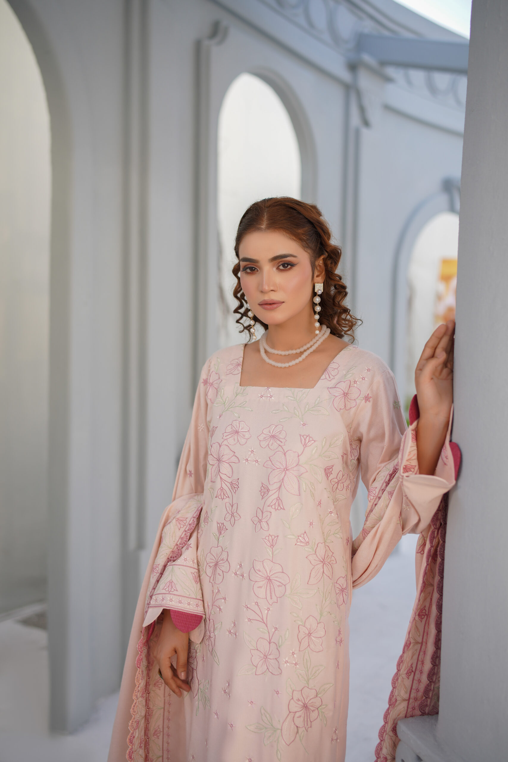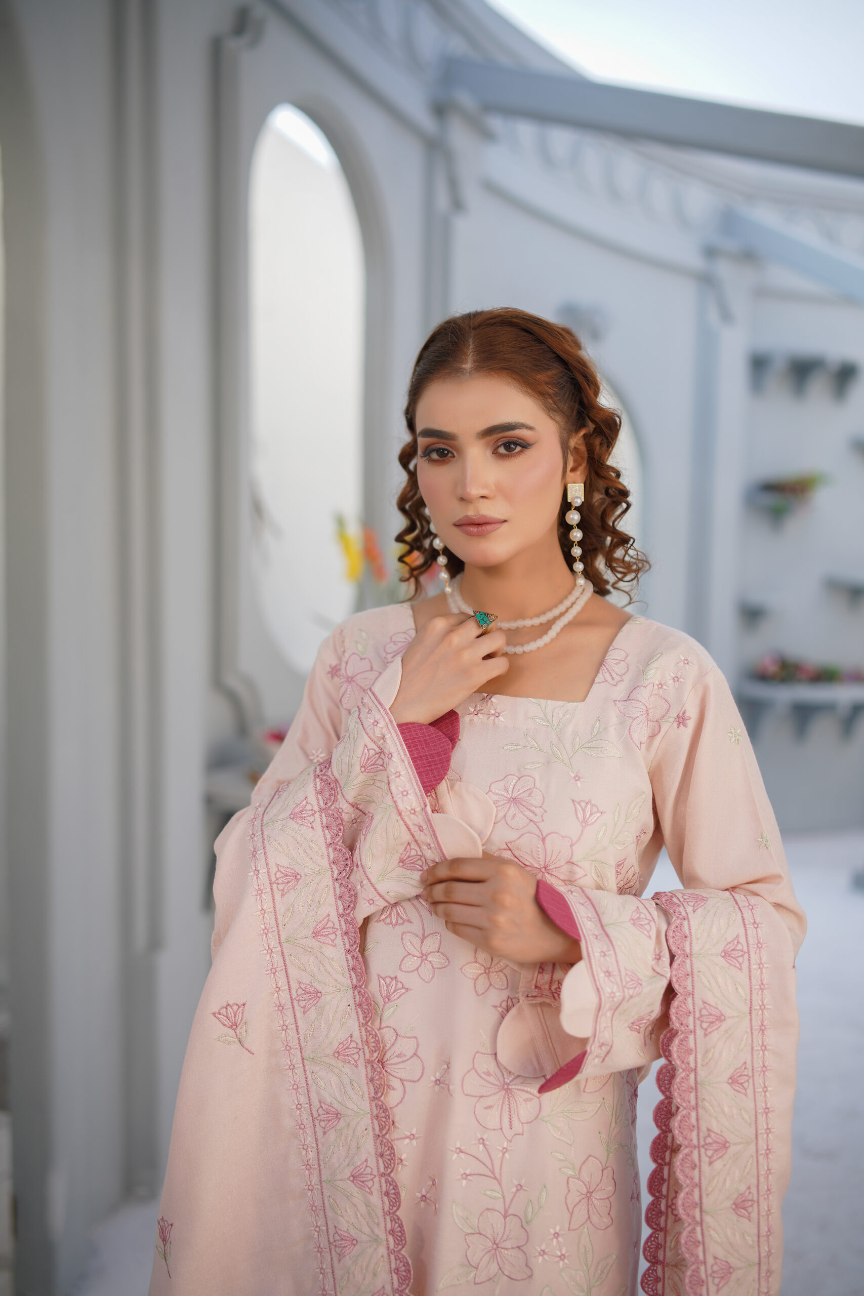 Manizay Umang Premium Embroidered Peach Leather With Embroidered Wool Shawl M-01